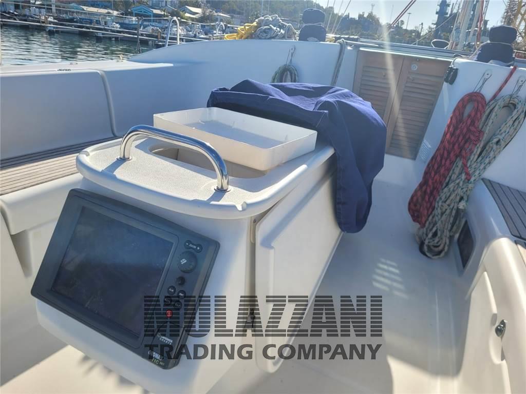 AIS (Seatex AIS 100), Allarme fumo/gas, Allarme motore, 2 Ancora (da 25 kg + ancora di rispetto 15 kg con catena 12 mm 100 mt), Angolo barra, Autoclave, Batterie, Bussola, Caricabatterie, Cavo corrente di banchina, Computer di bordo, Contamiglia, Display, Doccia esterna, Doppia timoneria, Ecoscandaglio (Tridata Raymarine), Elica di prua - bow thruster (Quick), GPS (Geonav 12 pollici con carte aggiornate navionics boating), Impianto antincendio, Log (Tridata Raymarine), Luci di cortesia, Motore fuoribordo per tender (Honda 2,5 Cv), Passerella (Besenzoni Idraulica estensibile a poppa con telecomandi), Pilota automatico (con telecomando), Plotter con antenna GPS, Pompa di sentina elettrica, Pompa di sentina manuale, Pompa Lavaggio Ponte, Presa 220V banchina, Presa acqua banchina, Radar, Raddrizzatore, Radio VHF (Raymarine con Distress fissa e VHF Portatile), Salpa Ancore Elettrico (Quick ), Sartiame spiroidale, Scaletta da bagno, Stazione vento, Supporto motore fuoribordo, Tender (+ motore Honda 2,5 Cv), 3 Winch, Winch Elettrico (per la randa)