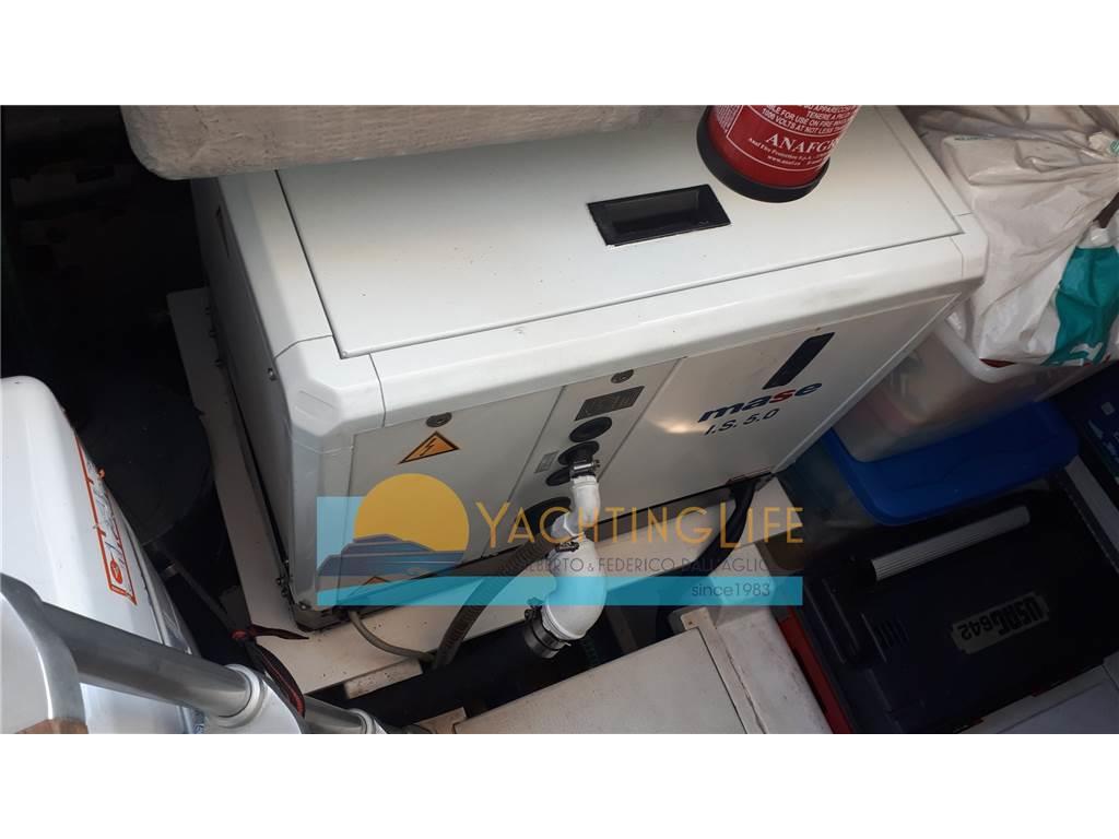 Allarme motore, Allarme sentina, Ancora, Angolo barra, Autoclave, Autogonfiabile, Batterie, Bussola, Caricabatterie, Doccia esterna, Ecoscandaglio, Elica di prua - bow thruster, Flap elettrici, GPS, Indicatori Flaps, Luci di cortesia, Passerella (a scomparsa), Piattaforma, Pilota automatico, Pompa di sentina automatica, Pompa di sentina elettrica, Presa 220V banchina, Radio VHF, Rollbar, Salpa Ancore Elettrico, Scaletta da bagno, Tavolo pozzetto (elettrico), Tromba