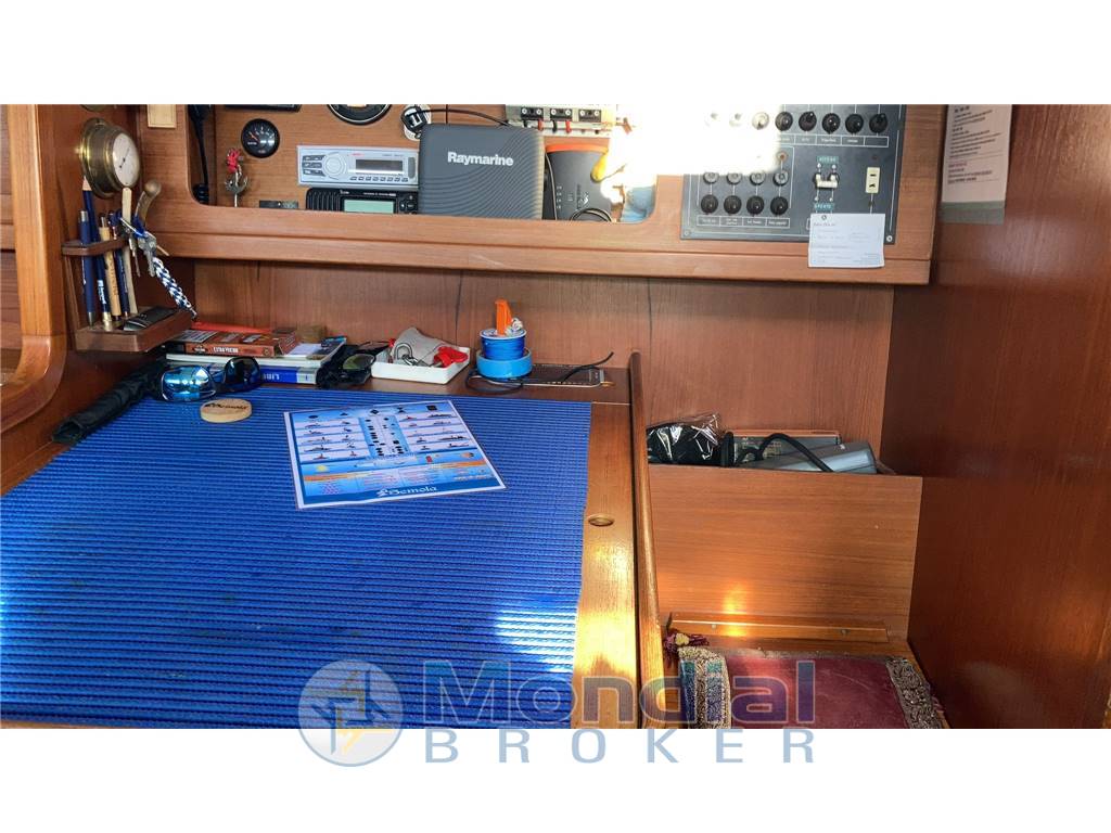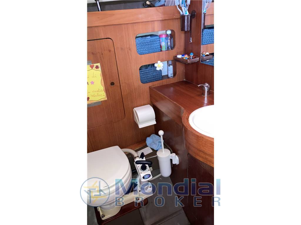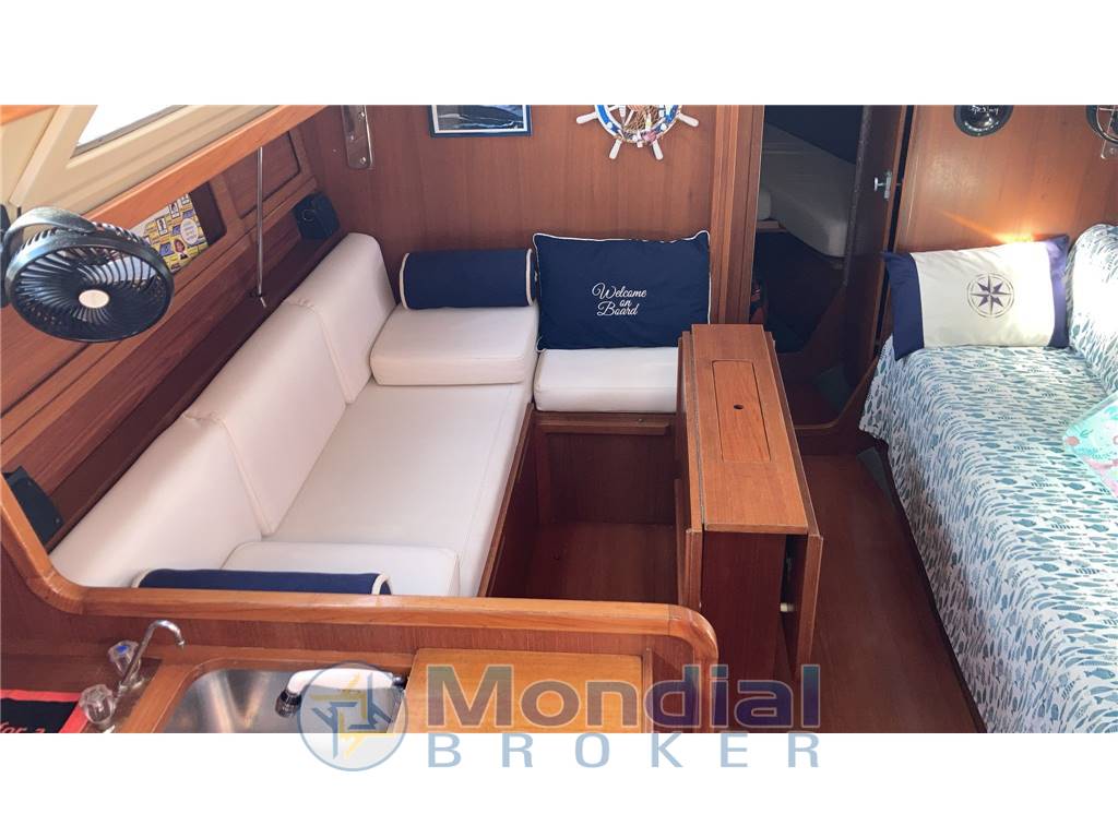 Interni gradevoli con legni perfetti, cucina ad elle composta da un lavello, frigorifero, 2 fuochi con forno basculante, dinette trasformabile, bagno passante tra dinette e la cabina armatoriale, la seconda cabina è posizionata a poppa.