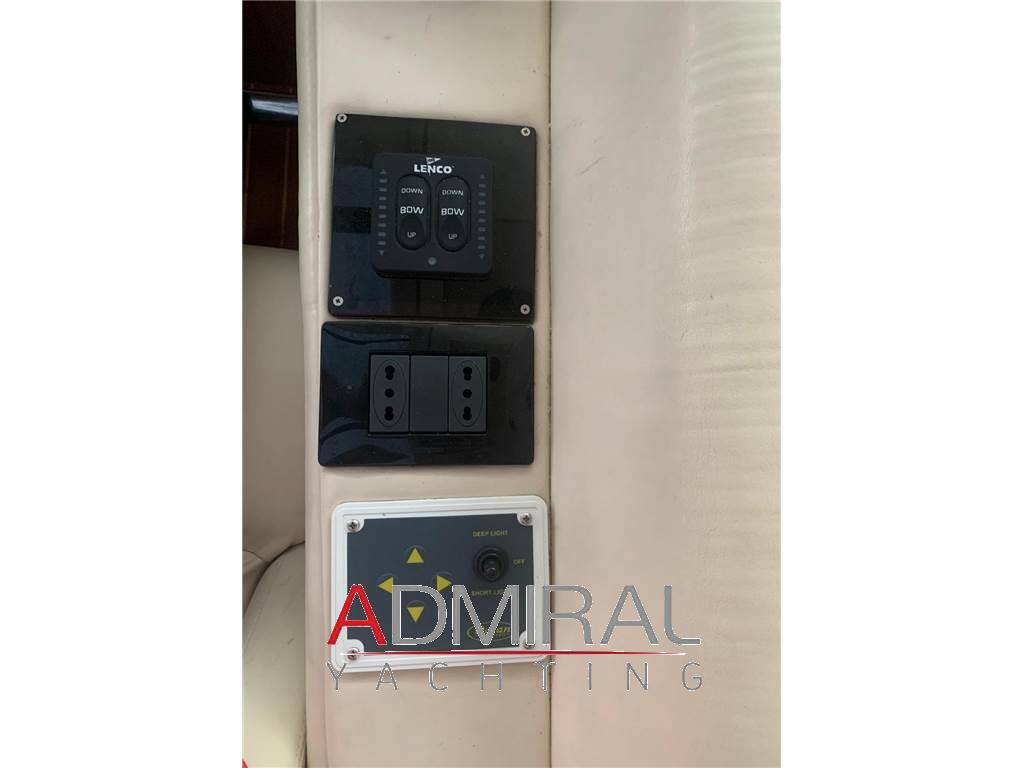 Allarme motore, Allarme sentina, Ancora, Autoclave, Batterie, Caricabatterie, Doccia esterna, Elica di prua - bow thruster, Faro orientabile, Flap elettrici, Luci di cortesia, Passerella, Piattaforma, Pompa di sentina automatica, Pompa di sentina elettrica, Pompa di sentina manuale, Pozzetto Teak, Presa 220V banchina, Salpa Ancore Elettrico, Scaletta da bagno, Tientibene con cancelletti, Tromba, Altoparlanti, Aria condizionata, Boiler, Clima reversibile, Cucina, Cuscineria completa, Cuscineria di poppa, Cuscineria di prua, Cuscineria Pozzetto, Digitale Terrestre, Frigorifero interno, ICE Maker, Impianto acque nere, Impianto TV, Microonde, Pavimento interno in legno, Piastra in vetroceramica (INDUZIONE), Prese interne 220v, Radio AM/FM, Riscaldamento, Serbatoio Acque Nere, Stereo, Telecamera, Tendalino, TV, WC marino elettrico