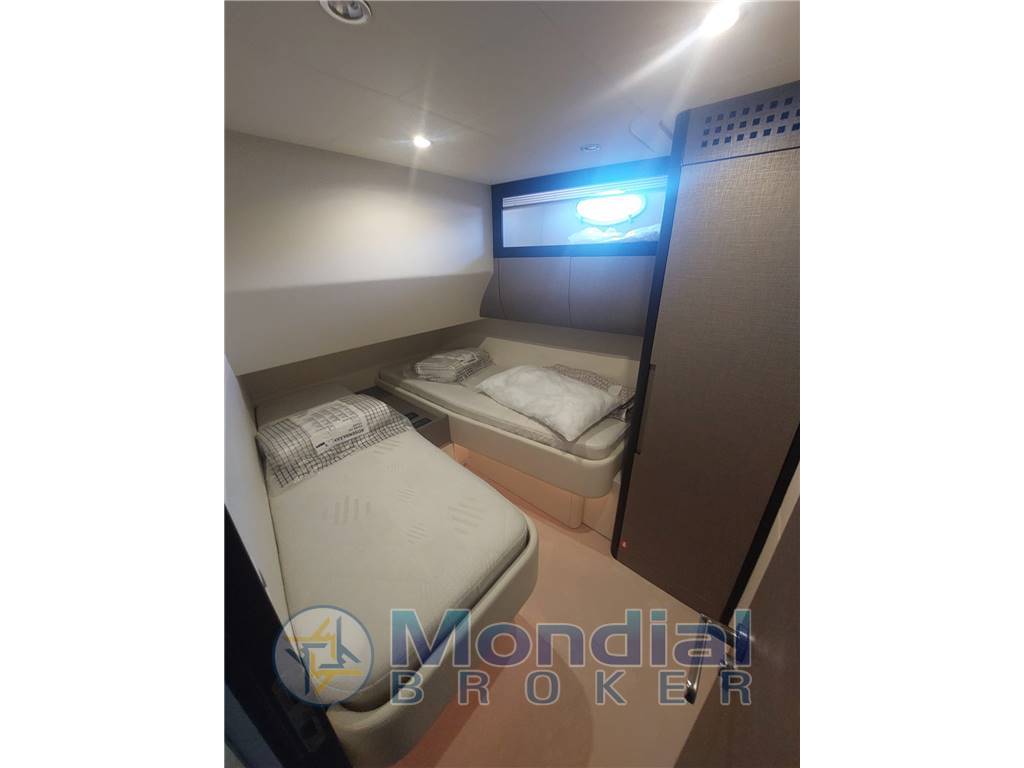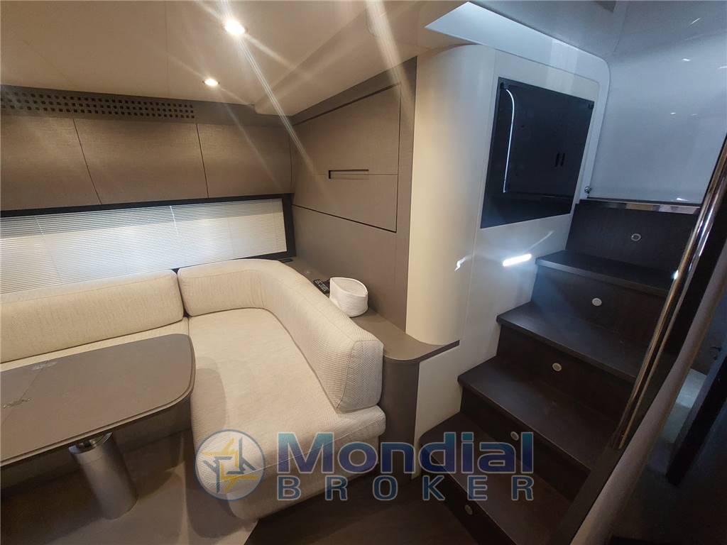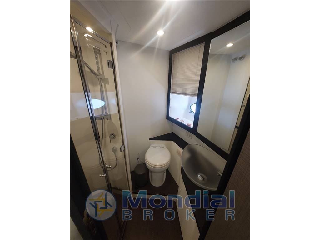 All’interno, tre cabine e tre bagni offrono un layout funzionale e ben distribuito. Dinette con TV a scomparsa, cucina accessoriata e cabina marinaio separata completano un’impostazione pensata sia per la navigazione sportiva che per le crociere familiari.