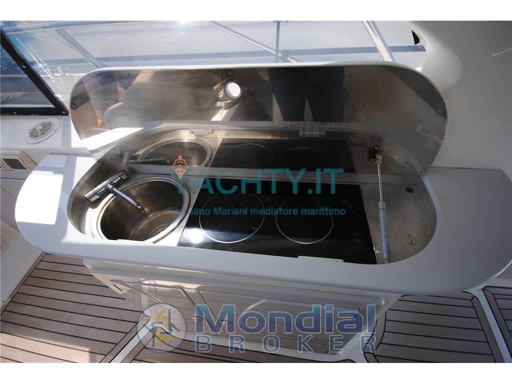Autoclave, Batterie, Bussola, Caricabatterie, Contametri catena, Ecoscandaglio, Elica di prua - bow thruster, Flap idraulici, Garage per tender, Hard top, Passerella, Piattaforma (maggiorata teak), Pilota automatico (Garmin), Plotter con antenna GPS (Garmin touchscreen), Pozzetto Teak, Radio VHF (Geonav), Salpa Ancore Elettrico