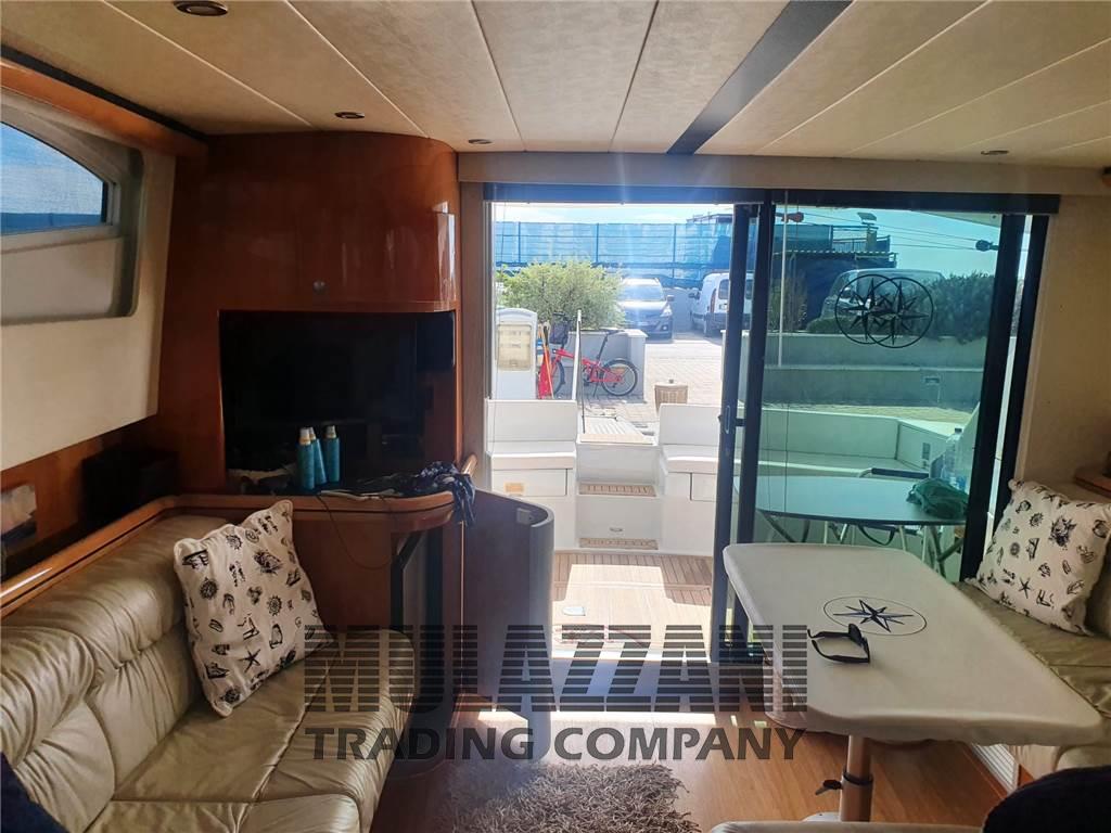 4 Altoparlanti, Antenna Satellitare TV, Aria condizionata (bocchetta attiva in dinette e predisposizione nelle cabine), Barometro, Bimini (Fly maggiorato scorrevole), Boiler (elettrico nuovo 2023), Cappottina, Cassaforte, Cassetta di pronto soccorso, Clima reversibile, Cucina, Cuscineria completa, Cuscineria di poppa, Cuscineria di prua, Cuscineria fly, Cuscineria Pozzetto, Dotazioni di sicurezza entro 12 miglia, Fornello (4 fuochi), Forno, 2 Frigorifero interno (130 l in cucina + 75 nel salone), Giubbetti di salvataggio, Impianto TV, Inverter, Oscuranti, Pavimento interno in legno (e moquette), Piastra elettrica, Prese interne 12v, Prese interne 220v, Radio AM/FM, Riscaldamento (Webasto 10.000 BTU in tutti gli ambienti), Salvagente anulare con cima munita di boetta luminosa, Stereo, Telo Copertura Fly, Telo copriconsolle, Telo coprisedile, Tendalino, 2 TV, 2 WC marino elettrico, Zattera di salvataggio (revisionata)