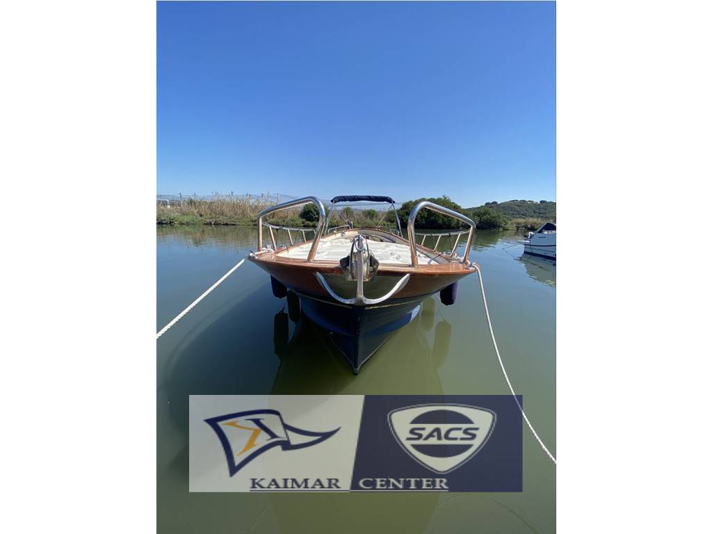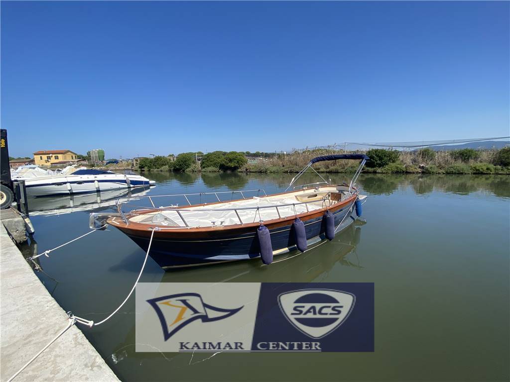 Gozzo esposito in buone condizioni, necessita attualmente di una lucidata al blu dello scafo e rifacimento del coppale.