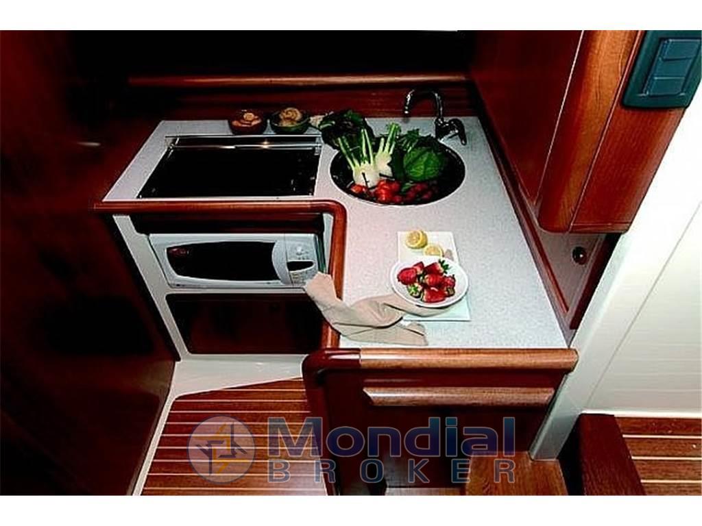 • La cucina è inserita nel disimpegno che conduce alle cabine per sfruttare al meglio ogni spazio e pur essendo situata sul ponte inferiore resta ben illuminata dalle finestrature della tuga.