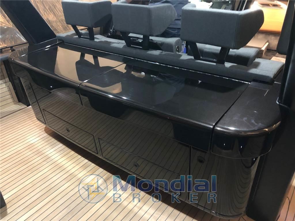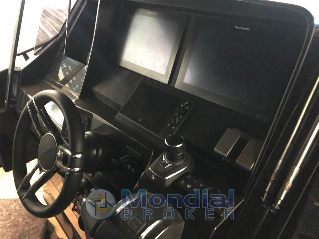 Allarme motore, Allarme sentina, Ancora, Angolo barra, Autoclave, Batterie, Bussola, Camminamenti laterali in teak, Caricabatterie, Colorazione speciale (Nero), Comando motori elettronico, Computer di bordo, 2 Display (Raymarine), Doccia esterna, Ecoscandaglio, Elica di prua - bow thruster, Faro orientabile, GPS, Hard top (Full Carbon), Impianto antincendio, Joystick, Lavaggio catena, Luci di cortesia, Piattaforma, Pilota automatico, Plotter, Plotter con antenna GPS, Pompa di sentina automatica, 2 Porta laterale, Pozzetto Teak, Presa 220V banchina, Raddrizzatore, Radio VHF, Salpa Ancore Elettrico, Scaletta da bagno, Tavolo pozzetto, Tromba, T-Top (Full Carbon)