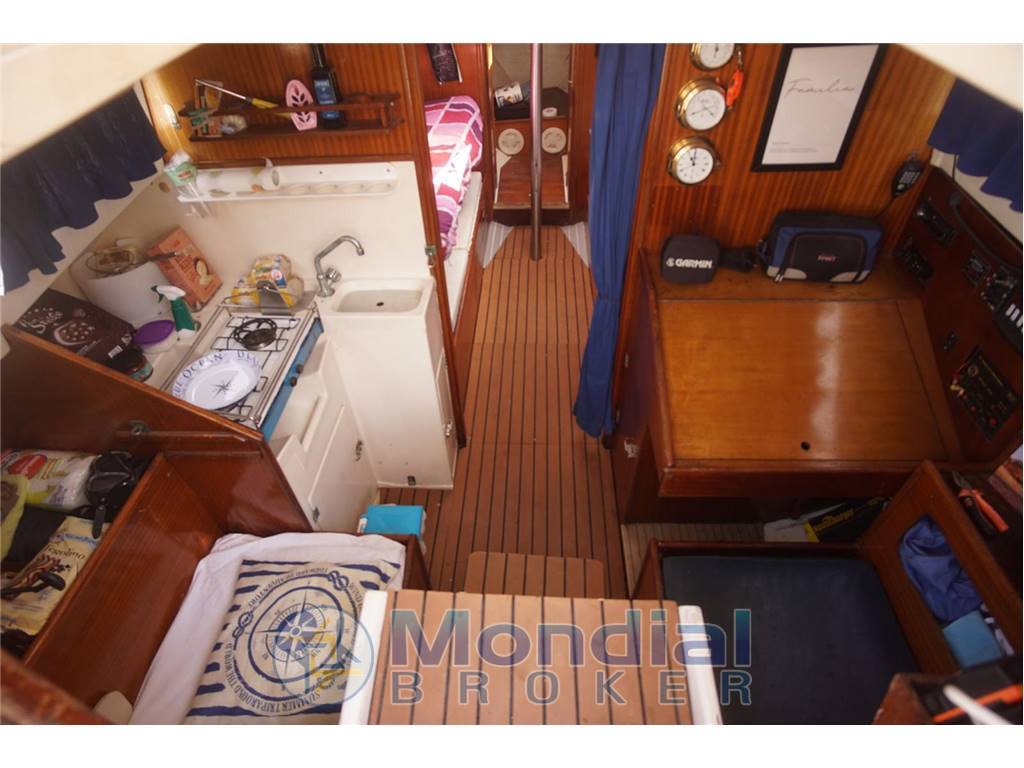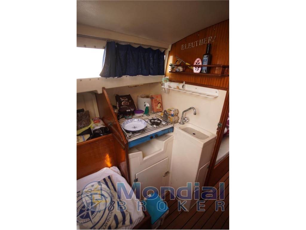 Quattro cuccette in quadrato, due cuccette di guardia a poppa, cucina 2 fuochi, frigo con compressore nuovo 2025, bagno con wc marino a prua.