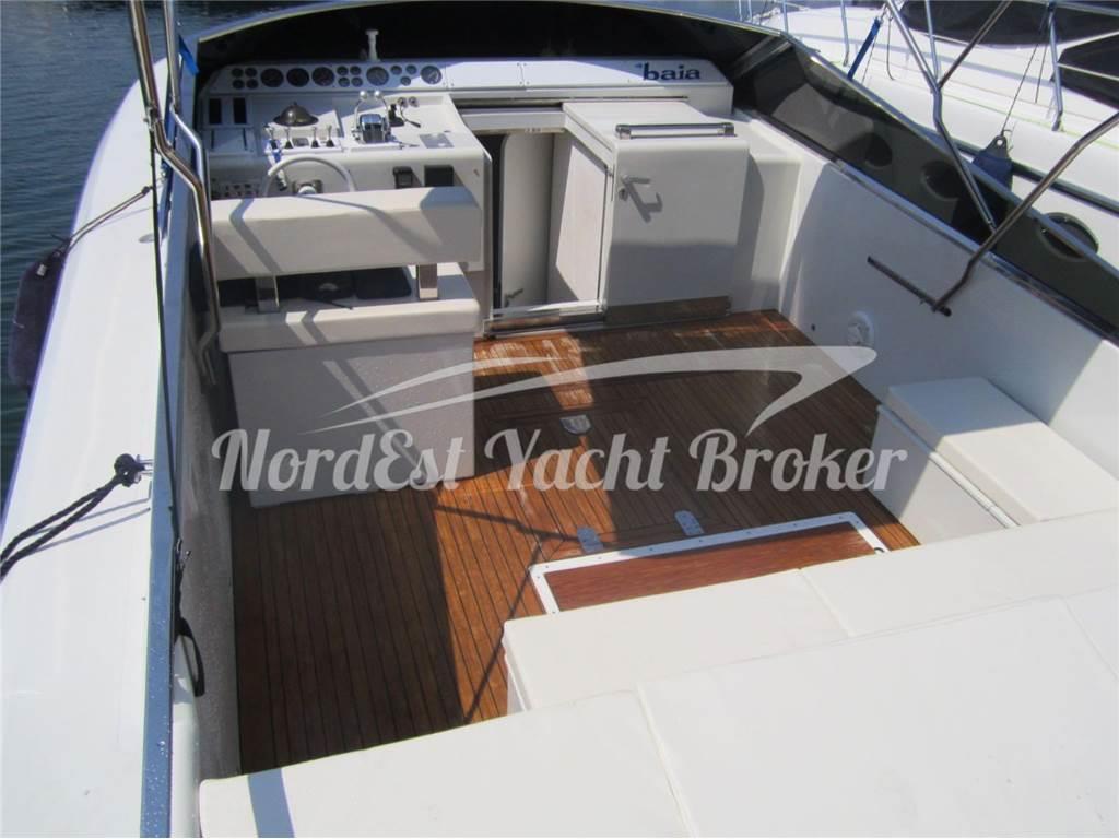 Baia 40 molto bello e ben tenuto. Un motore revisionato, l'altro in perfetto stato. Refitting estetico eseguito recentemente. Trasmissione con eliche di superficie Arneson.