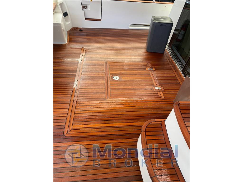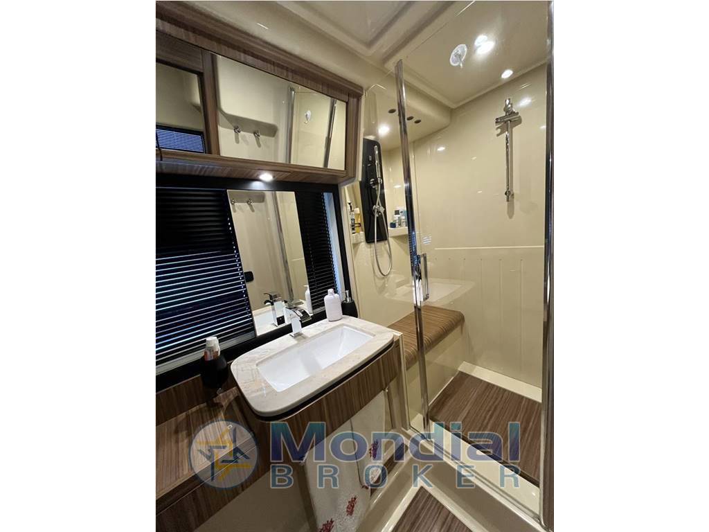 Pacchetto Advance, Pacchetto Deluxe, avvolgicavo banchina, Seakeeper, controllo Seakeeper seconda stazione fly, n. 2 sedie in pozzetto, copertura totale pozzetto, copertura totale fly, bimini top pieghevole sul fly, verniciatura scafo zante grey, plancetta bagno in teak, passerella, n. 2 luci sommerse, selle per tender, illuminazione LED, tavolo salone con lift, tavolo fly con saliscendi, tavolo pozzetto, sofa salone finitura capitonne, antine salone in legno, nella zona notte i gradini in legno e pavimento corridoio e cabine in gentas, top mobili salone in legno e specchio armadio armatoriale