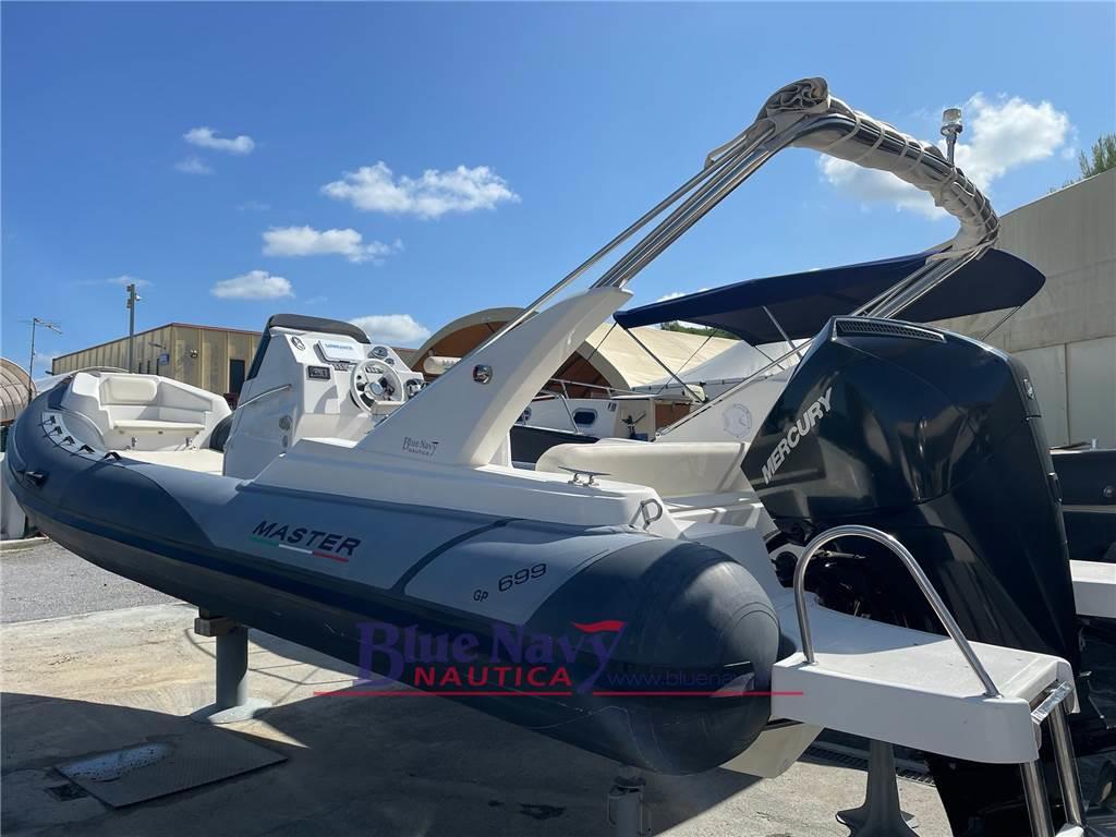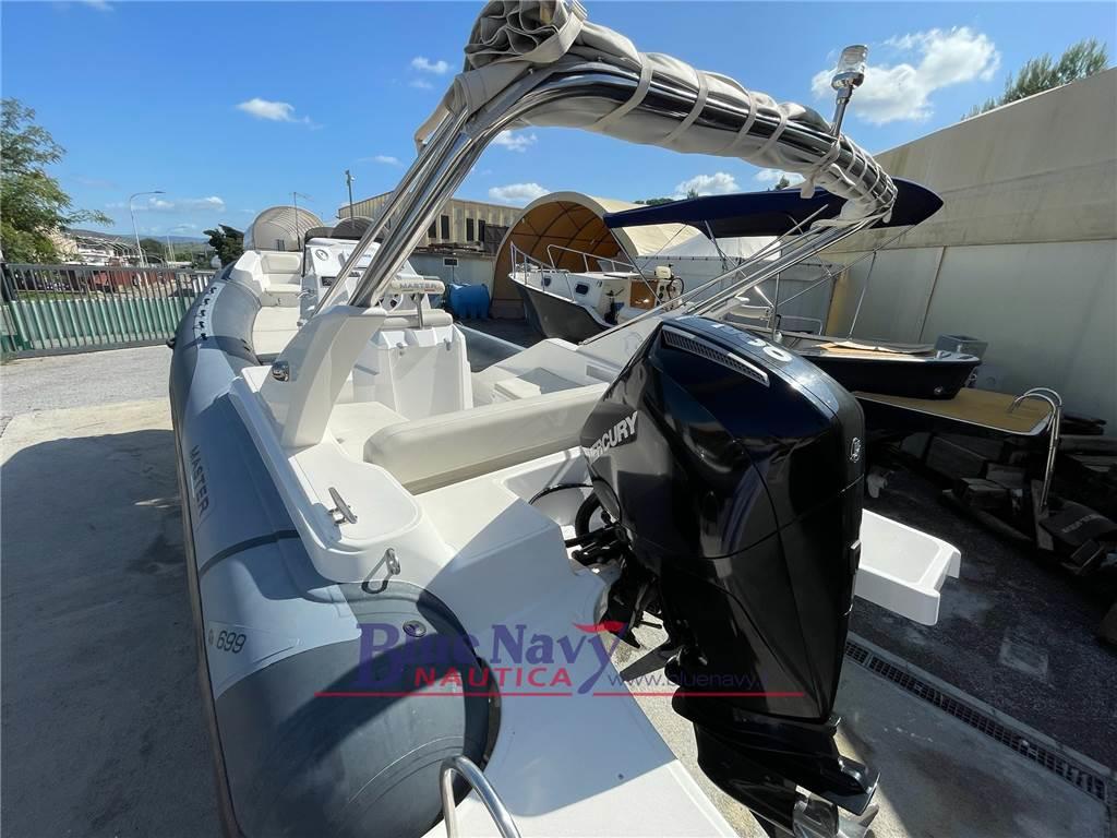 Proponiamo in vendita gommone Master 699 motorizzato con il motore fuoribordo Mercury 200cv V6 tutto del 2021, ore navigazione ca 150; equipaggiato con Rollbar + tendalino, doccetta, GPS, salpa ancora elettrico, cuscineria competa, copriconsol, scaletta di risalita, ecc. Motore sempre tagliandato presso officina Mercury autorizzata, in garanzia Mercury fino a 2026. in vendita SENZA carrello.