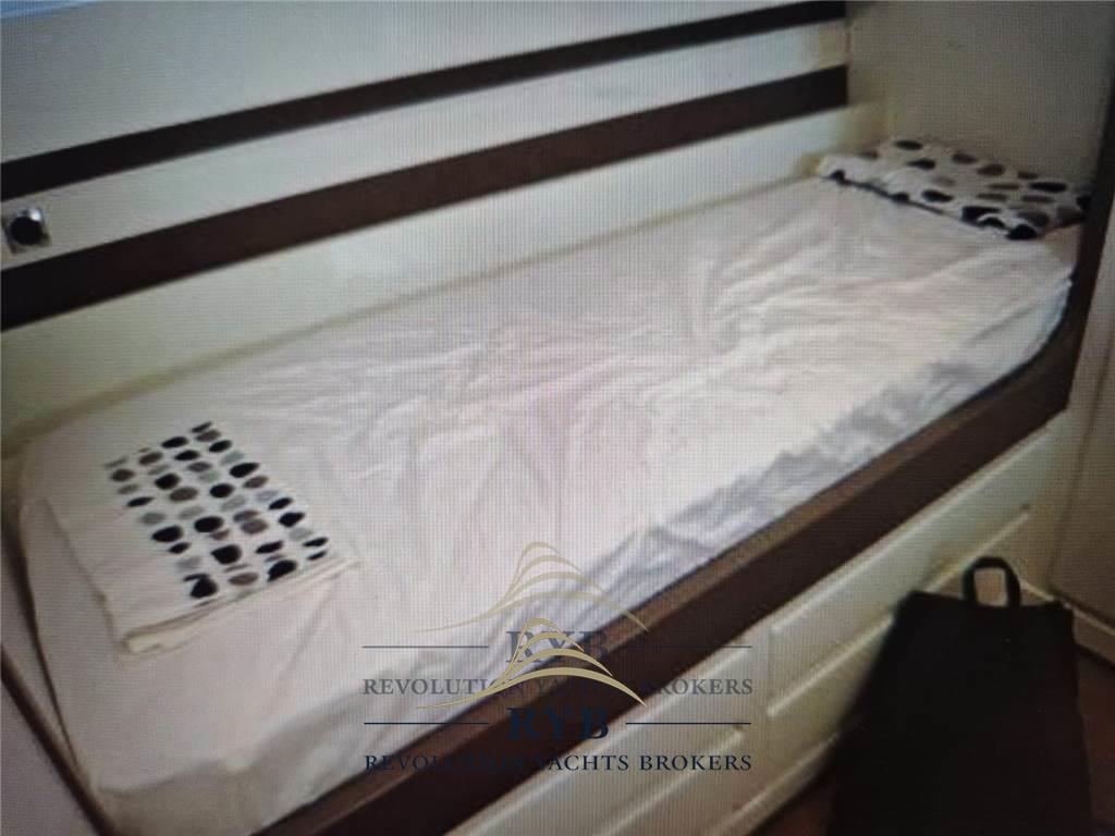 1 Matrimoniale italiana, 2 Doppia letti incrociati, 1 Cabina equipaggio, 2 Toilette. Persone trasportabili: 12.