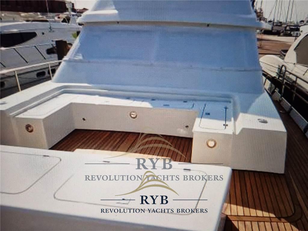 Camminamenti laterali in teak, Colorazione speciale, Doccia esterna, Flap idraulici, Lavaggio catena, Passerella (IDRAULICA), Piattaforma, Pozzetto Teak, Presa 220V banchina, Raddrizzatore, Ripetitore strumentazione (FLY), Salpa Ancore Elettrico, Scaletta da bagno, Tavolo pozzetto.