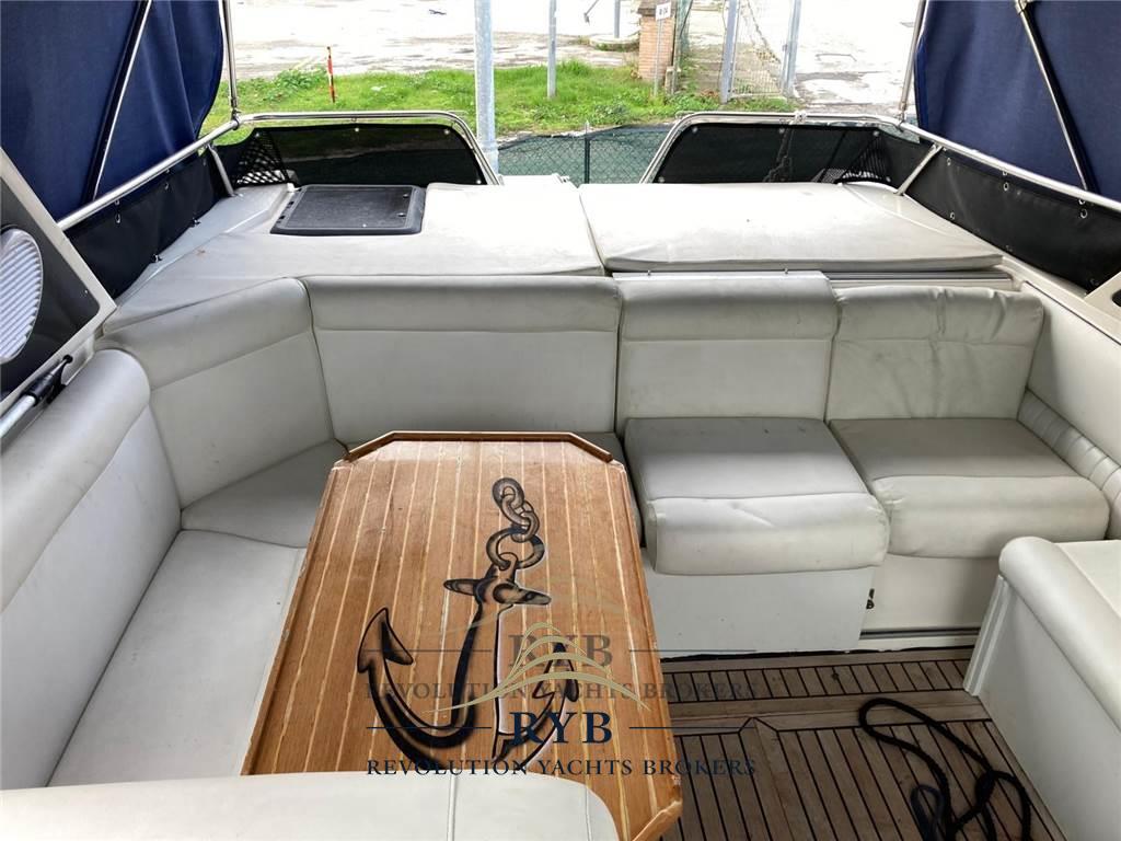 Allarme motore, Ancora, Doccia esterna, Flap idraulici, Indicatori Flaps, Lavandino nel Pozzetto, Passerella (IDRAULICA), Piattaforma, Pompa di sentina automatica, Pompa di sentina elettrica, Porta ingresso, Pozzetto Teak, Presa 220V banchina, Rollbar, Salpa Ancore Elettrico, Scaletta da bagno, Tavolo pozzetto, Tavolo Salone Abbattibile, Tromba.