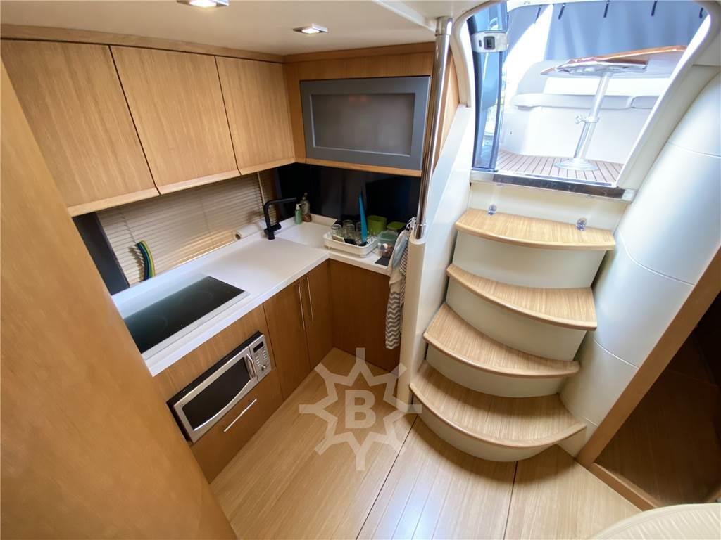 Altoparlanti, Aria condizionata, Cappottina (nuova), Clima reversibile, Copripozzetto (nuovo), Cucina, Cuscineria completa (nuova), Cuscineria di poppa (nuova), Cuscineria di prua (nuova), Cuscineria Pozzetto (nuova), Frigorifero esterno, Frigorifero interno, Impianto acque nere, Impianto TV, Microonde, Piastra in vetroceramica, Prese interne 12v, Prese interne 220v, Stereo, Telo copriconsolle, TV, 2 WC marino elettrico, Pavimento interno in rovere - Piano cucina rifatto nuovo in Corian con pareti e accessori di design - Pavimento bagni in legno