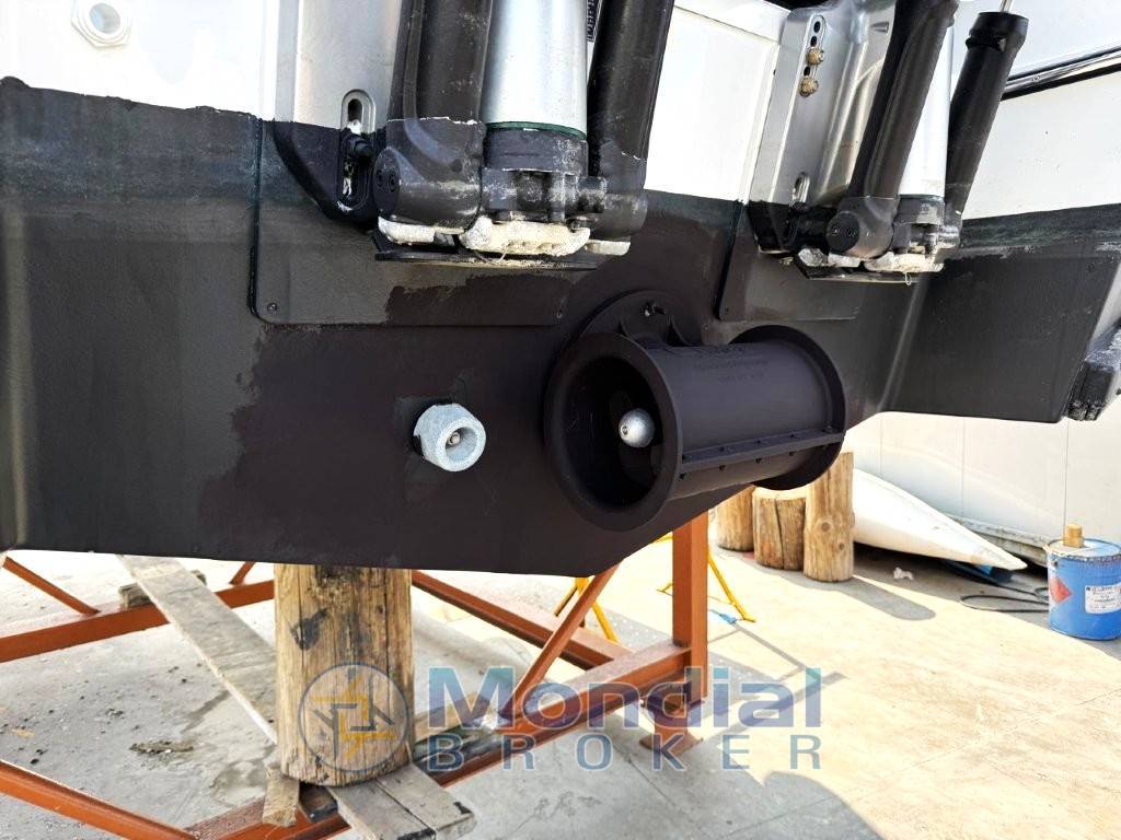 Motorizzata con 2 motori fuoribordo Mercury Verado 300 V8 con Joystick Piloting, elica di prua e elica di poppa. Flaps automatici Zipwake, aria condizionata, generatore esterno su hard top, inverter, teak in pozzetto e passavanti, scaletta di prua, apertura laterale, cuscineria per pozzetto di prua e poppa, teli di chiusura invernali e teli parasole, kit ormeggio e kit ancoraggio, dotazioni di sicurezza oltre 12 miglia, parabordi e portaparabordi a prua, cavi banchina su misura, Tender Quicksilver 240 Tendy AF White, Motore tender elettrico Epropulsion Spirit 1.0 Plus XS