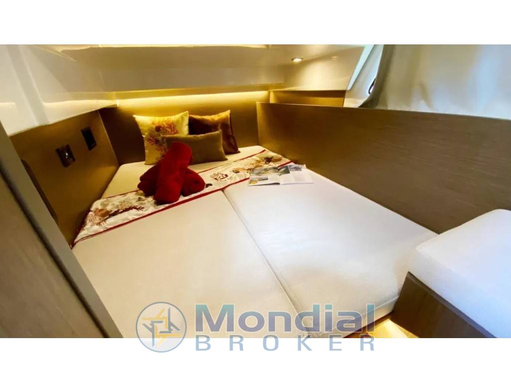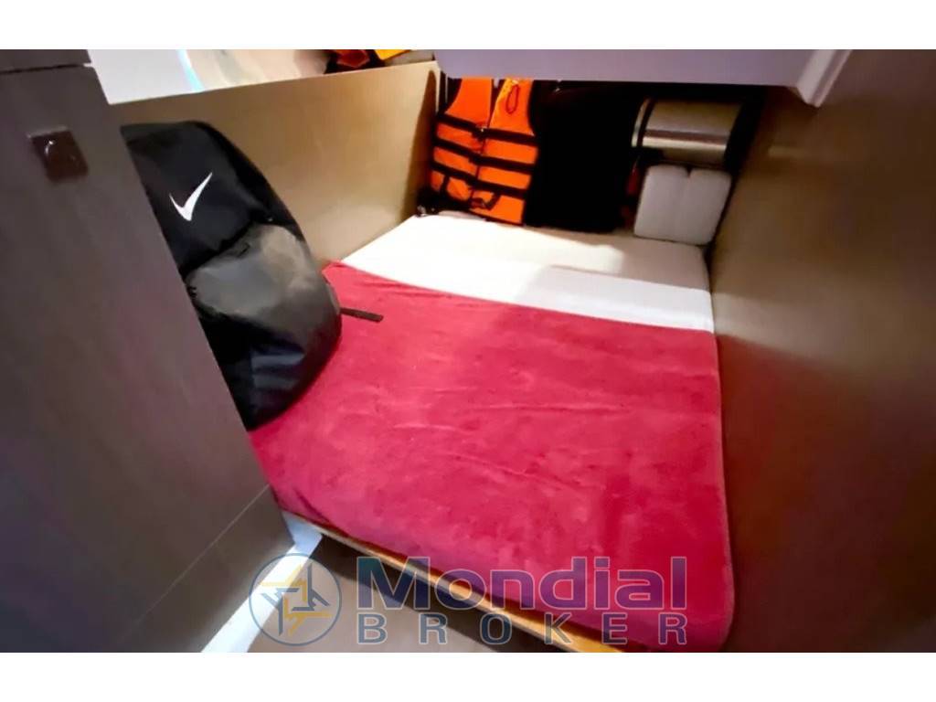 3 cabine e 1 bagno, tavolo interno trasformabile in cuccetta doppia. WC elettrico con acqua dolce. Cucina equipaggiata con 2 fuochi, frigorifero in cucina è secondo frigorifero in terza cabina, microonde, macchina del ghiaccio. Ventilatore interno, tende salone.