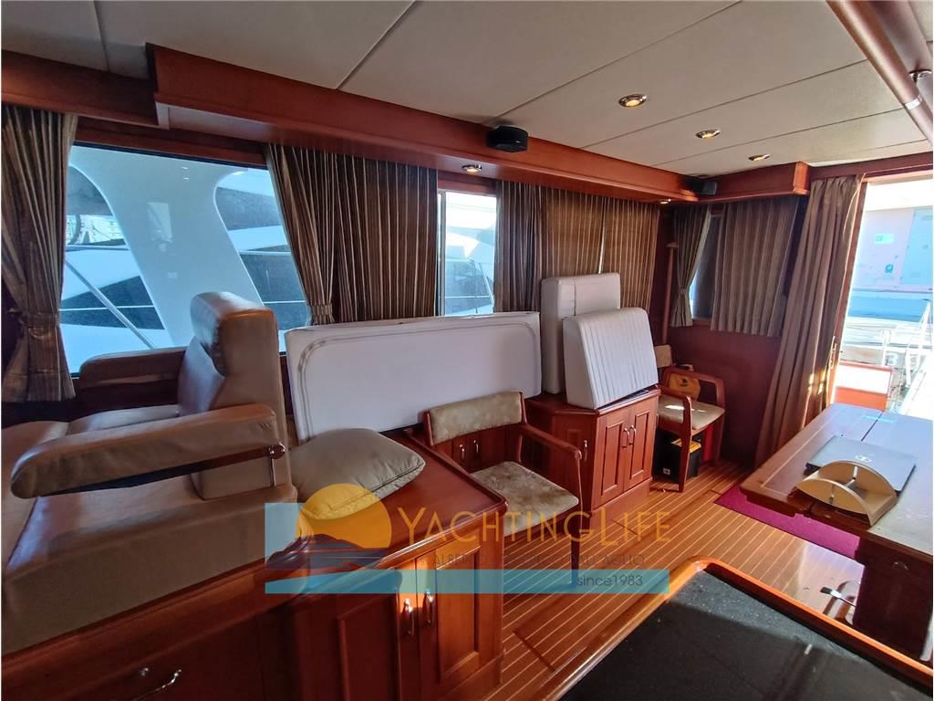 Allarme motore, Allarme sentina, Ancora, Angolo barra, Antenna radar, Autoclave, Autogonfiabile, Batterie, Bussola, Caricabatterie, Doccia esterna, Doppia timoneria, Ecoscandaglio, Elica di prua - bow thruster, Faro orientabile, Flap idraulici, GPS, Gruette per tender su fly, Indicatori Flaps, Luci di cortesia, Passerella, Pilota automatico, Pompa di sentina automatica, Pompa di sentina elettrica, Pozzetto Teak, Presa 220V banchina, Radar, Radio VHF, Salpa Ancore Elettrico, Scaletta da bagno, Tavolo pozzetto, Tromba, Winch tonneggio di poppa