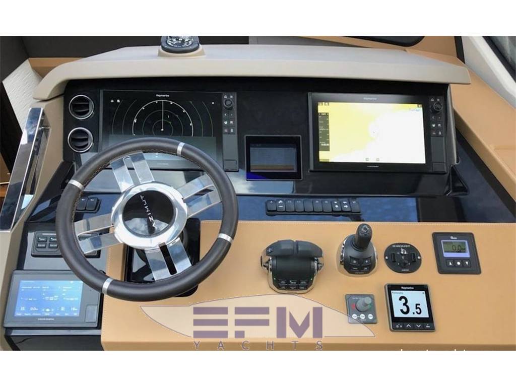 The sport-fly, an innovation introduced by Azimut, allows you to enjoy and pilot the yacht in the sun and wind, surrounded by seventeen square meters of space. Fully equipped boat is like new! Only 107 engines hours. Stabilizer seakeeper, Williams tender 325, Raymarine navigation and many other options