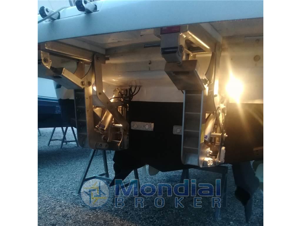Allarme motore, Ancora, 4 Batterie, Bussola, Cavo corrente di banchina, Doccia esterna, DSC vhf, Elica di prua - bow thruster, Flap elettrici, Garage per tender, GPS, Hard top, Indicatori Flaps, Luci di cortesia, Piattaforma (Idraulica), Plotter con antenna GPS, Pompa di sentina automatica, Presa 220V banchina, Salpa Ancore Elettrico, Scaletta da bagno, Tavolo pozzetto, Tender, Tromba