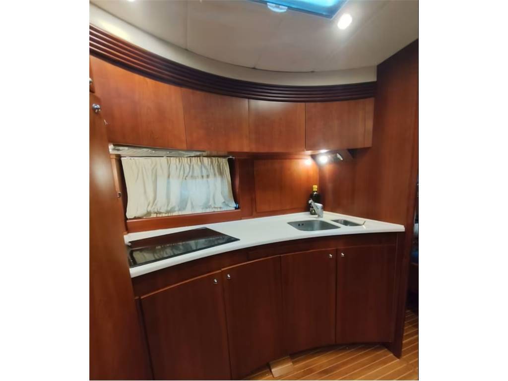 Verricello elettrico con ancora e catena, Impianto elettrico 12/220 V. con allaccio banchina, Generatore Kohler, Carica batterie, Batterie motori + batterie servizi, Flaps idraulici con indicatori in plancia, Elica di prua, Aria condizionata, Passerella idraulica, Boiler acqua calda bivalente, Impianto