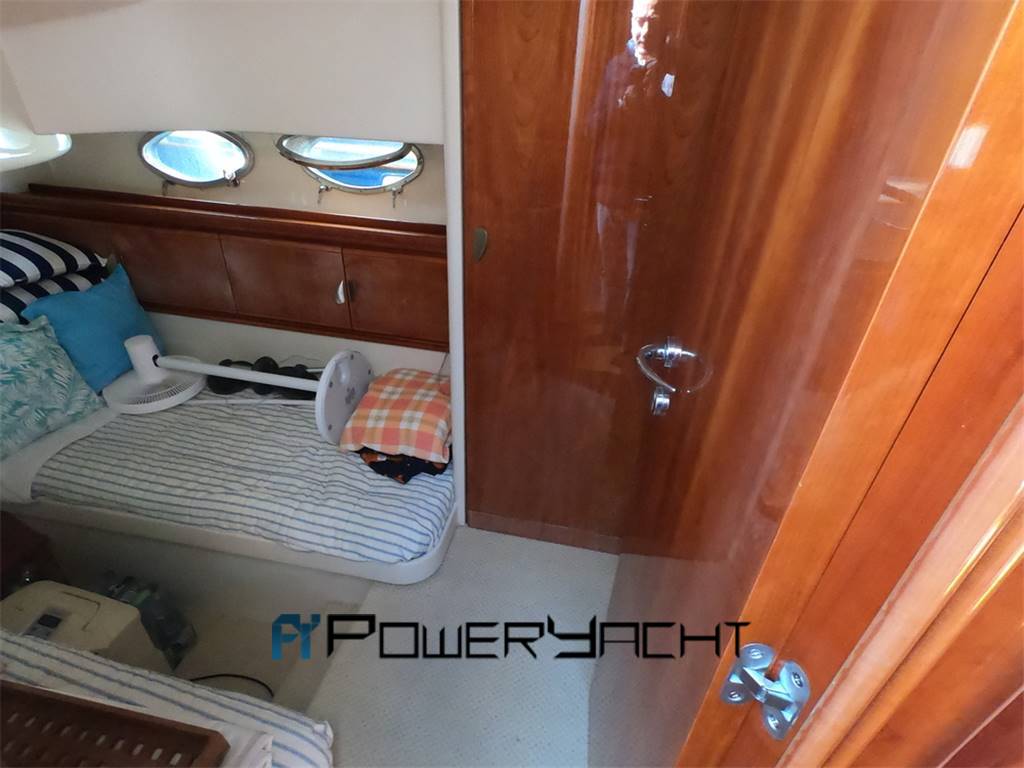 Cabina armatore a prua con bagno privato a dritta, due cabine ospiti a poppa, bagno ospiti con doccia a sinistra, salone a C a dritta con cucina lato apposto. Cabina marinaio con bagno doccia a prua.