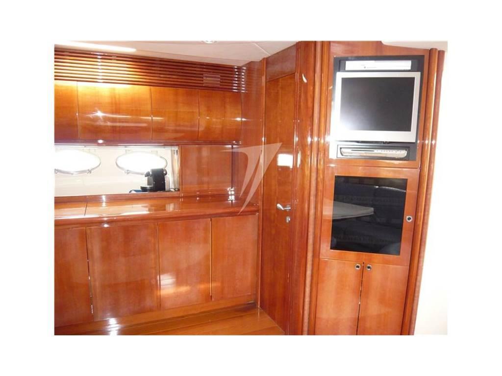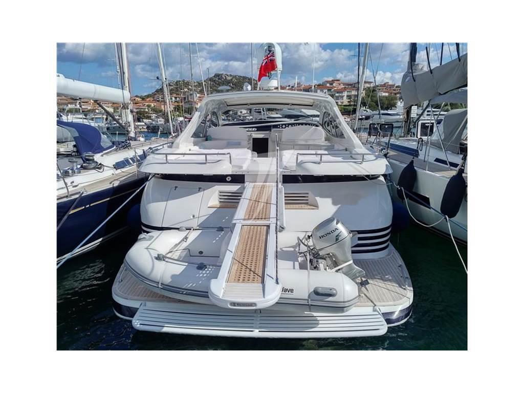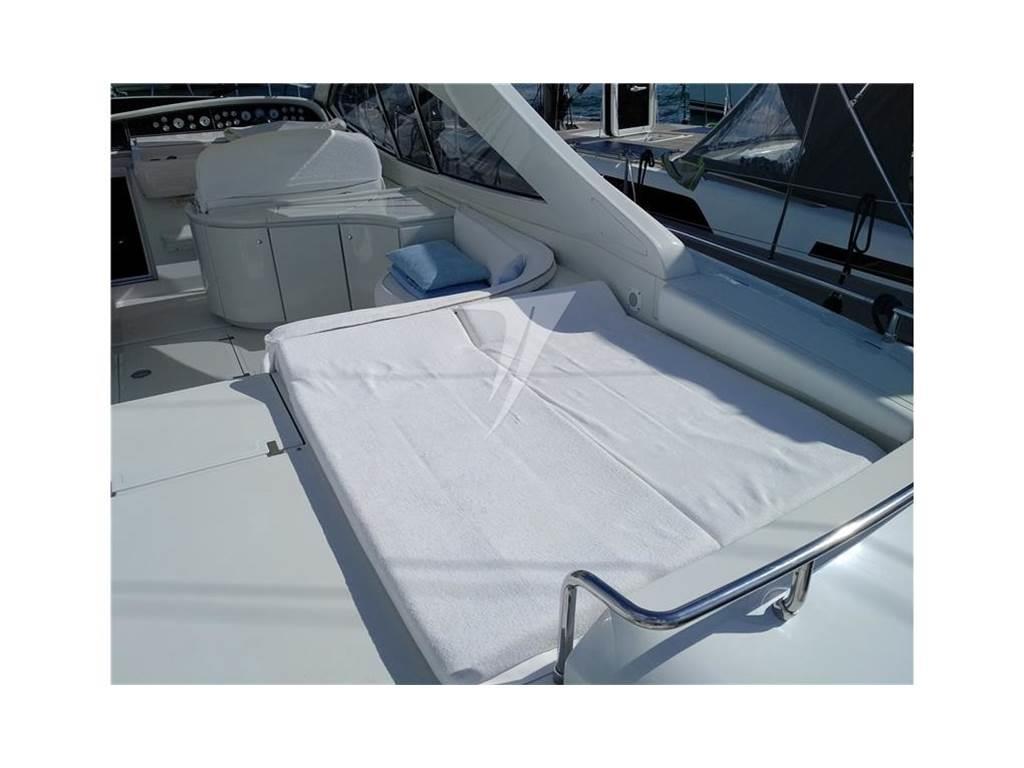 Allarme motore, Ancora, Autogonfiabile, Doccia esterna, Elica di prua - bow thruster, Faro orientabile, Flap idraulici, Gruette, Hard top (elettrico), Impianto Aria Compressa, Indicatori Flaps, Lavandino nel Pozzetto, Luci di cortesia, Luci subacquee, Passerella (idraulica), Piattaforma (teak), Pompa di sentina automatica, Pompa di sentina elettrica, Pompa di sentina manuale, Pozzetto Teak, Presa 220V banchina, Raddrizzatore, Salpa Ancore Elettrico, Scaletta da bagno, Tavolo pozzetto, Tavolo Salone Abbattibile, Tender, Tromba, Winch tonneggio di poppa.