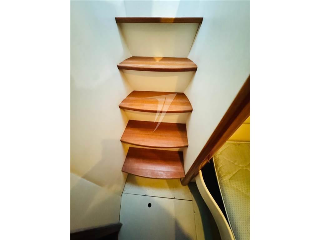1 Doppia in piano, 1 Matrimoniale italiana, 1 Matrimoniale francese, 1 Cabina equipaggio, 2 Toilette. Persone trasportabili: 14.