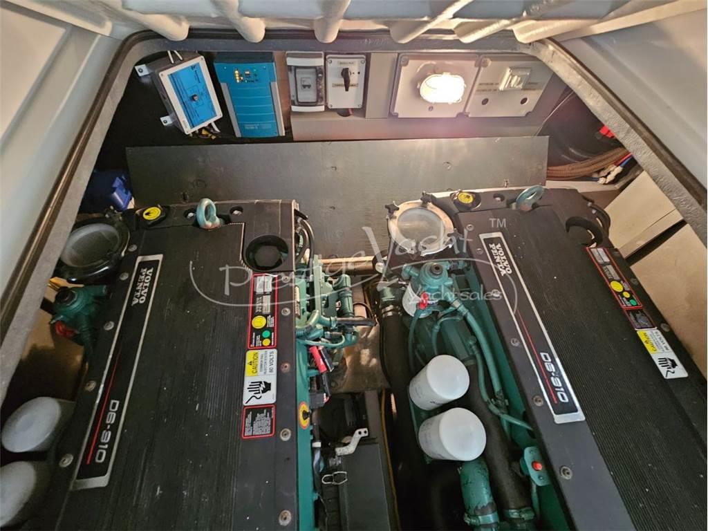 Condizioni perfette, sempre rimessata al coperto nei mesi invernali ed in acqua 1 mese l'anno, sempre tagliandata Volvo, svolto tagliando piedi delle 500 ore previsto dalla volvo, svolto manutenzione di tutti gli scambiatori, controllo generale motori, nessun lavoro da svolgere, interni mai utilizzati, cucina mai utilizzata, pianale mobile cucina in marmo, copriletti originali, tessuti come nuovi, parquet interno e mobilia in condizioni pari al nuovo. Necessita di svolgere la sostituzione del teak spiaggetta, dei tendalini esterni, lucidatura scafo..
