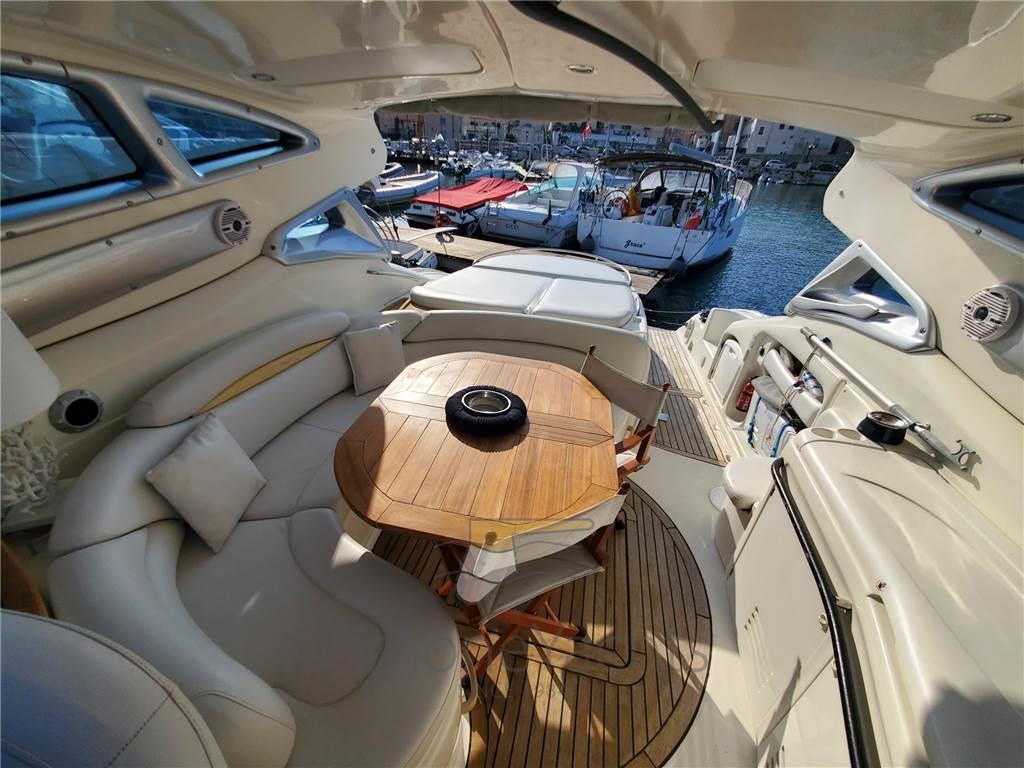 Hard top apribile elettricamente, gps Raymarine 12 pollici, antenna radar, pilota automatico, elica di prua,tromba, faro orientabile, impianto tv, garage apribile elettricamente, gruppo elettrogeno 11kw, passerella idraulica telescopica a scomparsa,doppio winch tonneggio di poppa, aria condizionata interna e pozzetto, pozzetto e plancetta di poppa in teak, frigorifero esterno ed interno, grill esterno, wc elettrici.