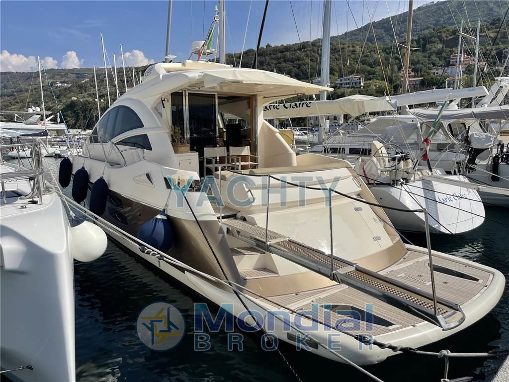 Ancora, Angolo barra, Antenna radar, Autoclave, Batterie, Bussola, Camminamenti laterali in teak, Comando motori elettronico, Contametri catena, Contamiglia, Doccia esterna, Ecoscandaglio, Elica di prua - bow thruster, Flap idraulici, GPS, Indicatori Flaps, Lavandino nel Pozzetto, Passerella, Piattaforma (Affondabile), Pilota automatico, Plotter con antenna GPS, Pompa di sentina automatica, Pompa di sentina manuale, Pozzetto Teak, Presa 220V banchina, Radar, Raddrizzatore, Radio VHF, Salpa Ancore Elettrico, Scaletta da bagno, Winch tonneggio di poppa