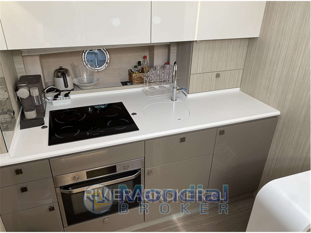 Salone luminoso con tetto elettrico in vetro, divano a U con tavolo da pranzo, ampi spazi di stivaggio in ogni cabina, WC elettrico, doccia separata, cucina attrezzata: forno a microonde, frigorifero, piano cottura a induzione, congelatore, aria condizionata reversibile (caldo/freddo), illuminazione indiretta a LED, TV a schermo piatto a scomparsa, impianto audio - Salone marinaio/equipaggio: accesso indipendente tramite la piattaforma, letto singolo + WC/lavandino
