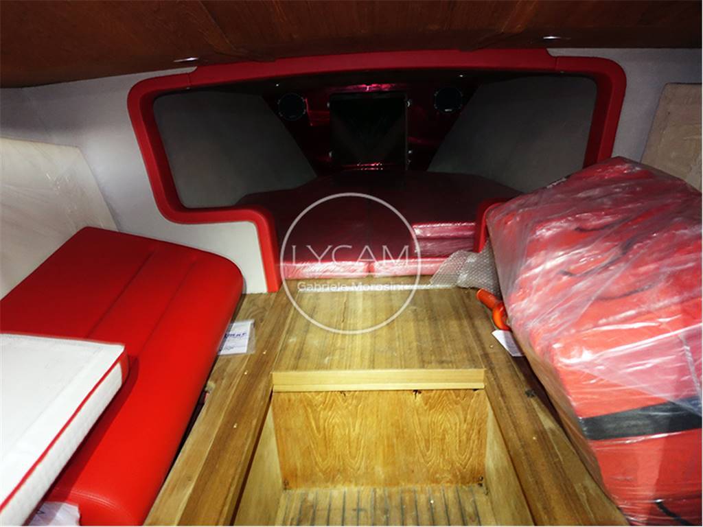 Attraverso la plancetta poppiera si accede al ponte di coperta che ospita a poppa il vano motori e, a seguire verso prua, il pozzetto. Questo è composto da divano posto per madiere e 2 sedute singole per pilota e co-pilota. La timoneria si trova sul lato di dritta.
