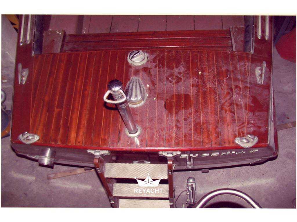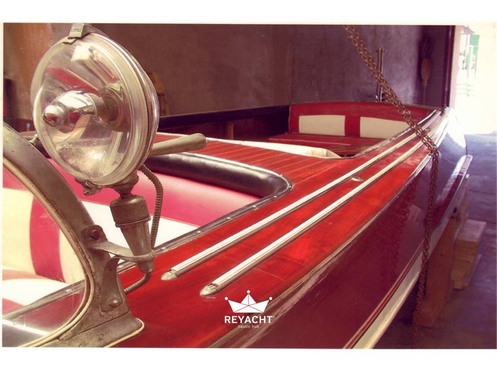 Klassische Rumpfkonstruktion aus massivem Mahagoni, handgefertigt 1954 in der Abbate￾Werft. Ausgestattet mit Interceptors V8-Motor, 215 PS, voll funktionsfähig.