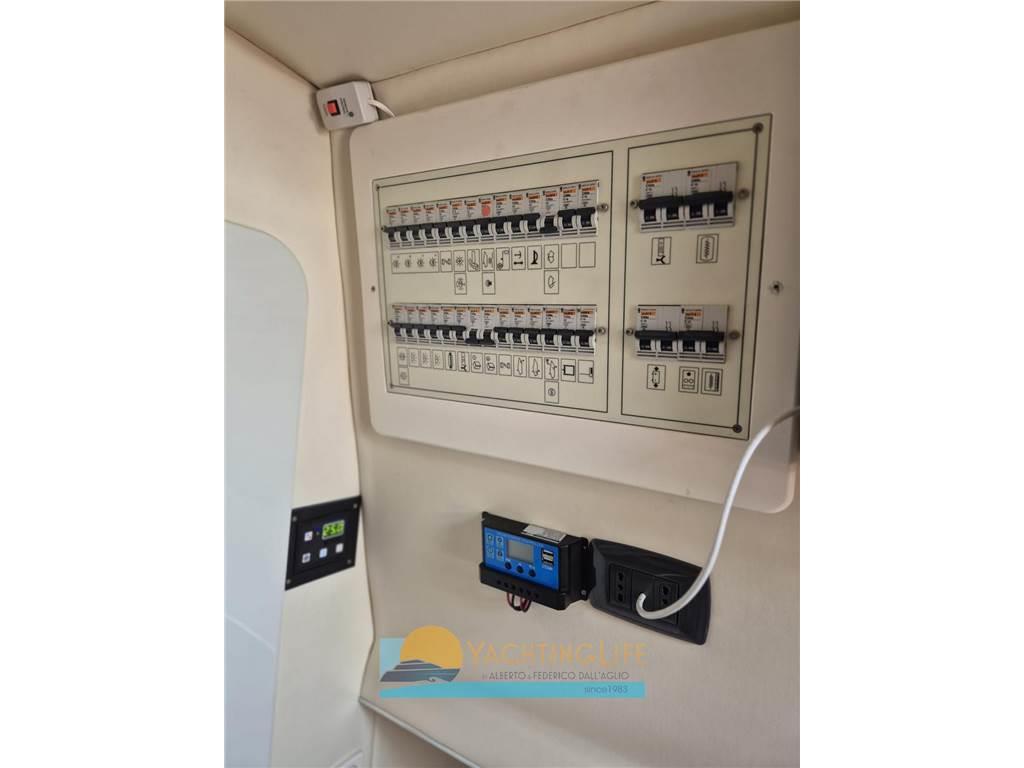 Allarme motore, Ancora, Angolo barra, Autoclave, Batterie (2025), Bussola, Caricabatterie, Cavo corrente di banchina, Comando motori elettronico, Corrimano di sicurezza (Sulla cappottina), Doccia esterna, DSC vhf (ICOM ICM-330 2023), Ecoscandaglio, Luci di cortesia, Luci di navigazione, Monitor batteria, Motore fuoribordo per tender (Parsun 2,5hp), Parabordi, Piattaforma, Pilota automatico (Garmin 2025), Plotter con antenna GPS (Garmin 9" 2023), Pompa di sentina automatica, Porta ingresso, Presa 220V banchina, Rollbar, Salpa Ancore Elettrico, Scaletta da bagno, Tavolo pozzetto, Tender (Pneumatico), Tromba