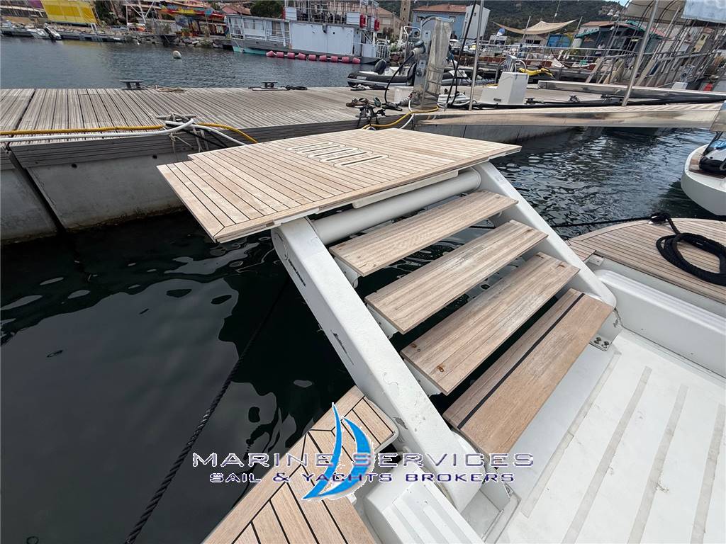 Principali accessori : Hard Top , Tender Garage, Plancetta di poppa maggiorata con sistema  Opacmare per  varo tender , Elica di Prua , Passerella idraulica , Aria Condizionata , Generatore , Dissalatore .