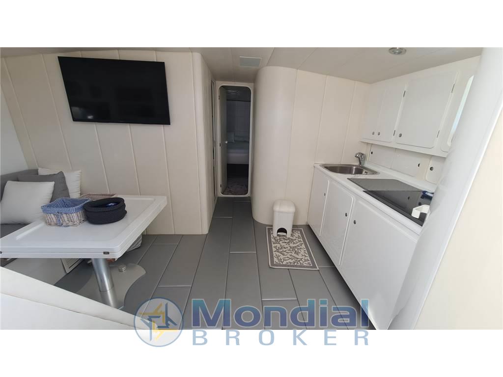 Elica di prua elettrica Side Power - passerella elettroidraulica Besenzoni - mobile in pozzetto con lavello, frigo e piano cottura elettrico due fuochi - frigo - piano cottura interno 4 fuochi - aria condizionata - antenna TV - TV LCD in ogni cabina e in dinette - gruppo elettrogeno Kohler 12 kW - luci subacquee - inverter - contametri catena - luci di cortesia - luci interne LED (2021) - portellone di poppa elettro idraulico con telecomando - tender con fuoribordo.