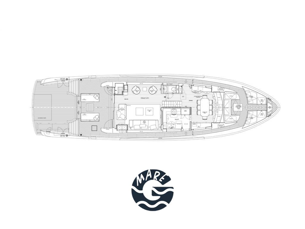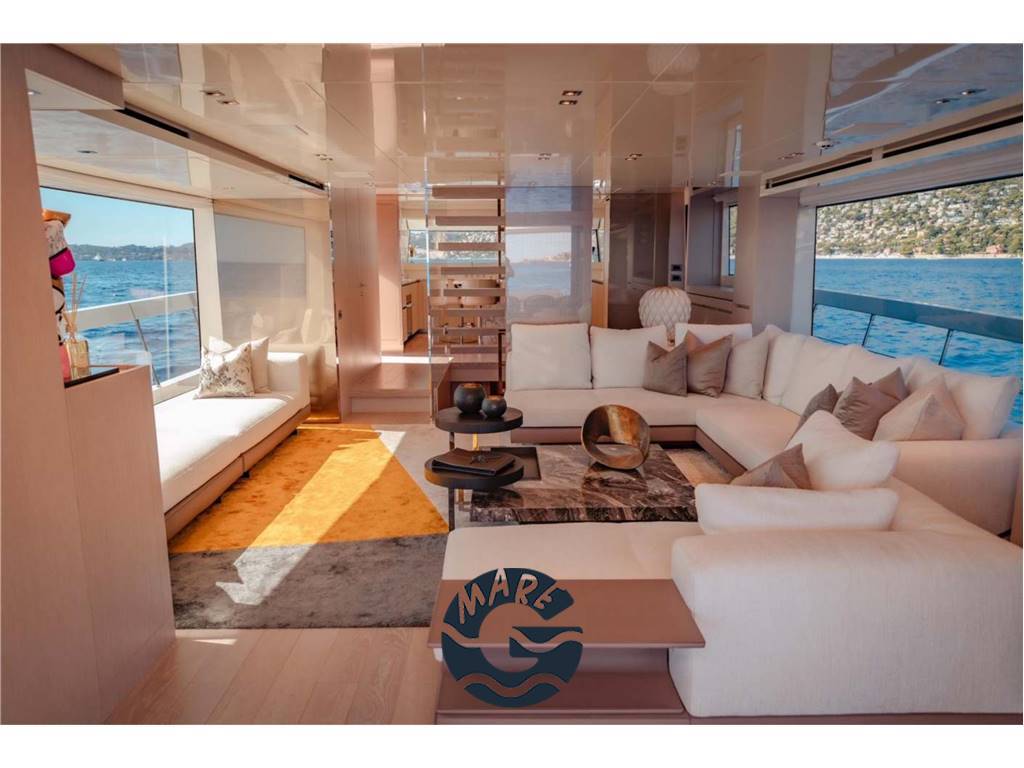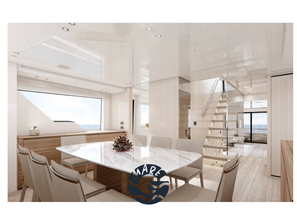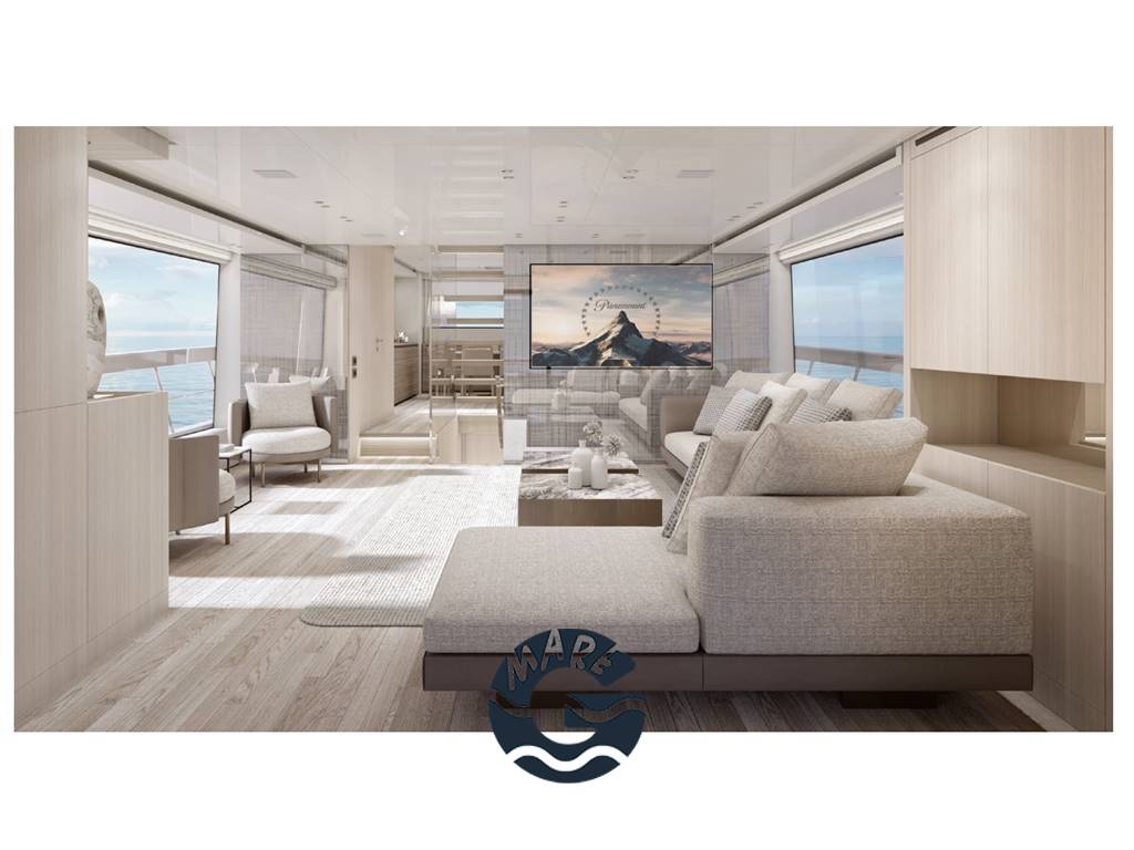 Yacht crossover che unisce stile, comfort e tecnologia. Layout innovativo con ampi spazi luminosi e interni firmati Minotti. Equipaggiato con 3 motori Volvo IPS 1050 D13, stabilizzatori Zero Speed, piattaforma di poppa idraulica, hard top con lamelle elettriche, e dotazioni di livello “Diamond Package”. Un’imbarcazione ideale per chi cerca eleganza e prestazioni.