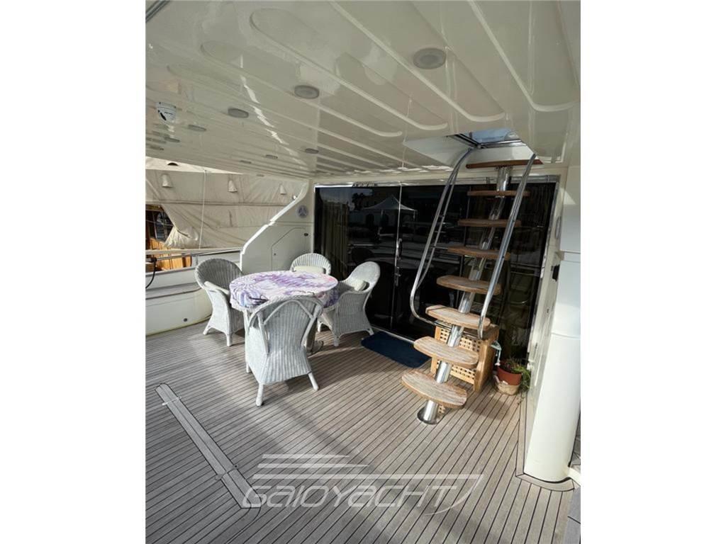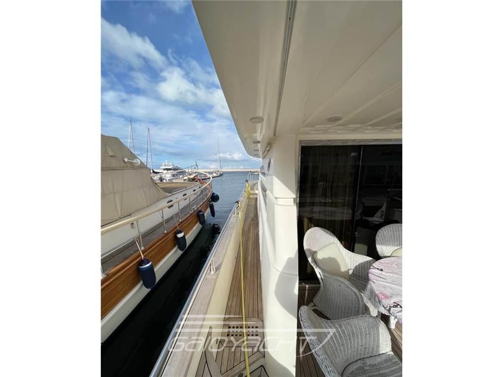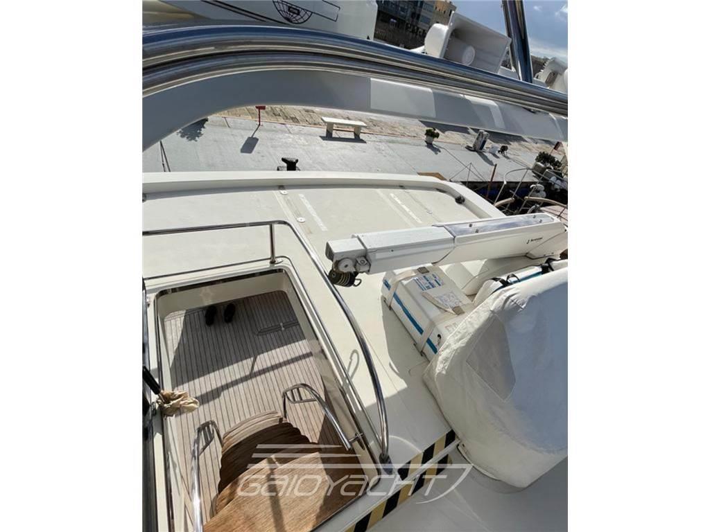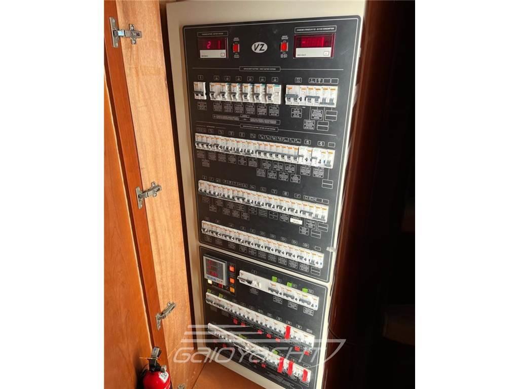 AIS (tx/rx + EPIRB), Allarme fumo/gas, 2 Autoclave (Gianneschi con regolatore elettronico), Autogonfiabile, 20 Batterie (8 motori 105A/h+10 Servizi 105A/h+ 2 Generatore 95A/h), Bussola, Camminamenti laterali in teak, Caricabatterie (Sistema Mastervolt con inverter), 2 Contametri catena (doppia stazione), Contamiglia, 2 Display (Raymarine Axiom Pro in plancia e sul Fly), Doccia esterna, Ecoscandaglio, Elica di poppa - stern thruster (elettroidraulica), Elica di prua - bow thruster (elettroidraulica), Flap idraulici (N°2), GPS, Gruette per tender su fly, 2 Impianto antincendio (in sala macchine e nel vano generatore nuovi), Interfono, Passerella (idraulica a scomparsa revisione 2020), Piattaforma (in teak), 2 Pilota automatico (doppia stazione Raymarine), Plotter, Pompa di sentina automatica, Pompa di sentina manuale, Pozzetto Teak, Presa 220V banchina, Presa acqua banchina, Radar (Raymarine), Raddrizzatore, Radio VHF, Salpa Ancore Elettrico, Scaletta da bagno, Selle per Tender (sul Fly ), Tender (Brig F380 + Evinrude 60 cv 2t)