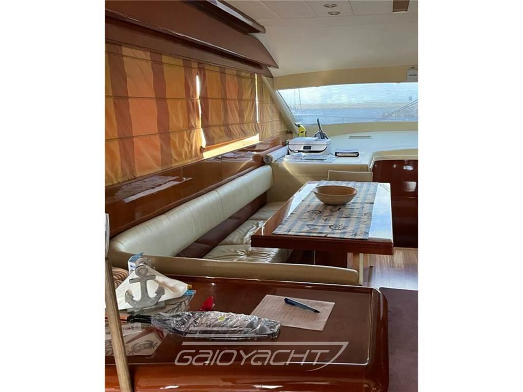 Aria condizionata (impianto caldo/freddo), Boiler (220V), Cucina (Con piano induzione), Cuscineria completa, Cuscineria di poppa, Cuscineria di prua, Cuscineria fly, Dissalatore (150 l/h 220V), Forno (Multifunzione), Frigorifero interno (con congelatore), Ghiacciaia, Inverter, Lavasciuga, Lavastoviglie, Pavimento interno in legno, Prese interne 12v, Stereo, Telecamera (Raymarine sullo specchio di poppa), TV (SAT), Manette Elettroniche MAN