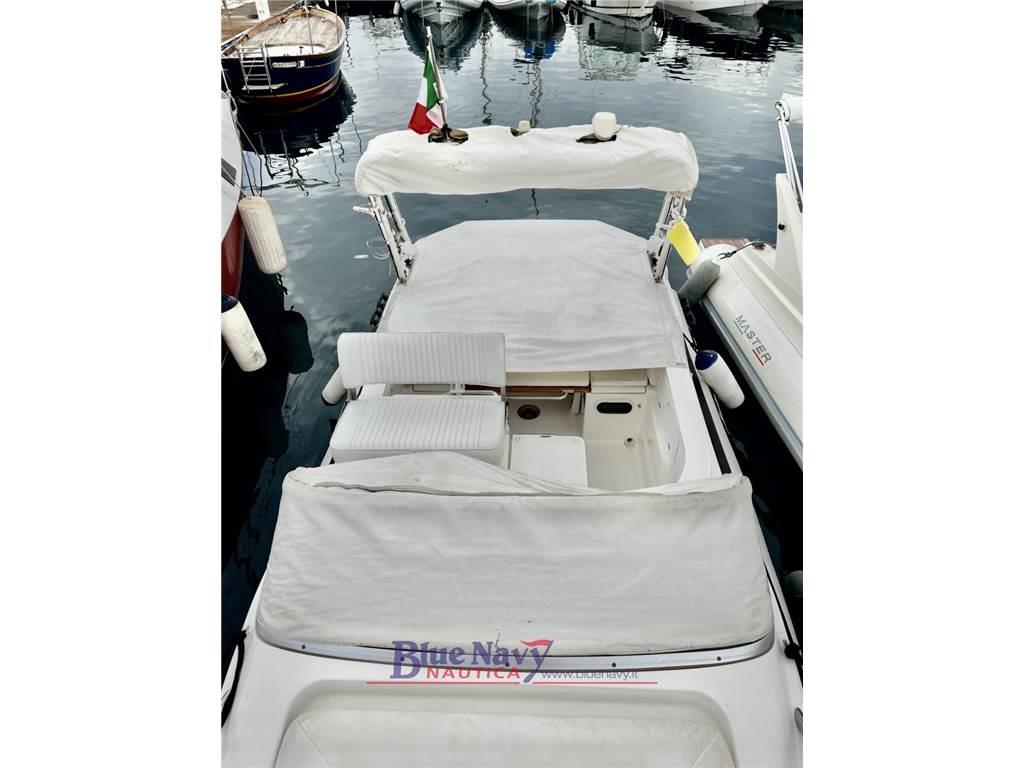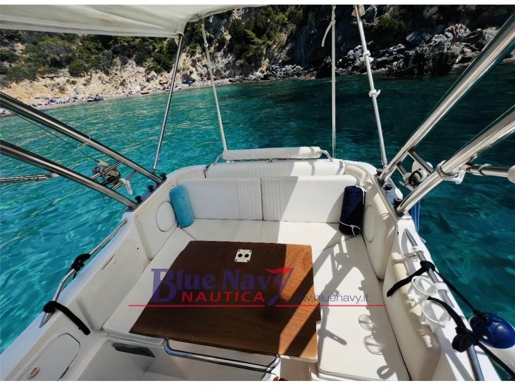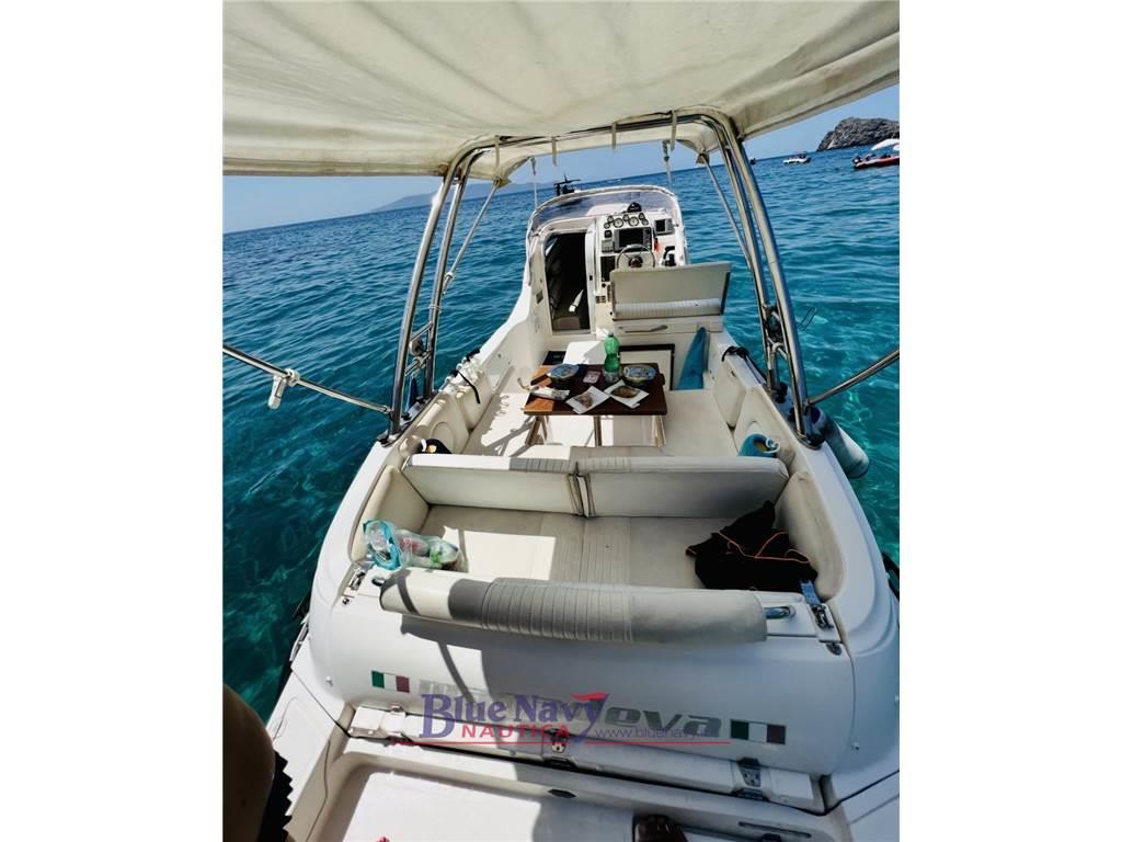 Equipaggiamento: Rollbar in acciaio Inox con tendalino, cuscineria completa ( interna -cuscini, tende e cuscinetta esterna nuova (2022), tenda campeggio nautico originale, scaletta di risalita, passerella post. meccanica, musone salpancora, verricello elettrico con telecomando wireless, ancora in acciaio Inox, faro di profondita, seduta di guida maggiorata per 2 persone, boiler acqua calda, mobile cucina lavello e frigo esterno, fornello a due fuochi, cartografico GPS, Ecoscandaglio VHF, Stereo radio USB bluetooth con casse Sony hp nuove, LED di poppa blu, ecc