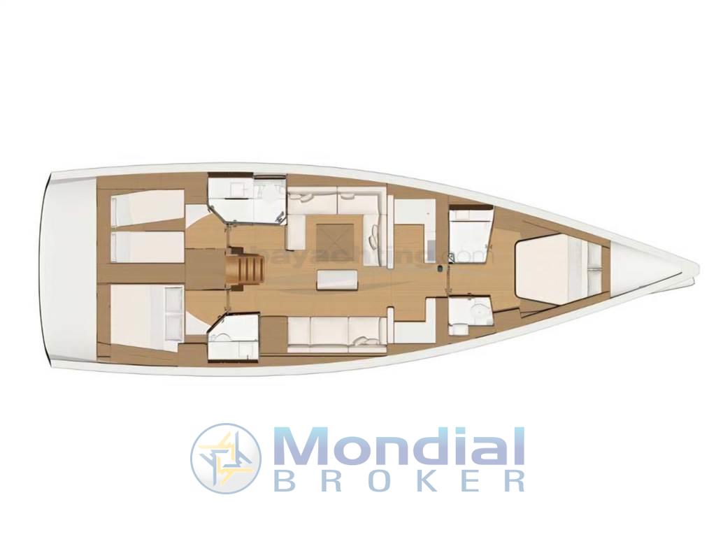 Dufour 520 Grand Large usato. Layout 3 cabine e 3 bagni.