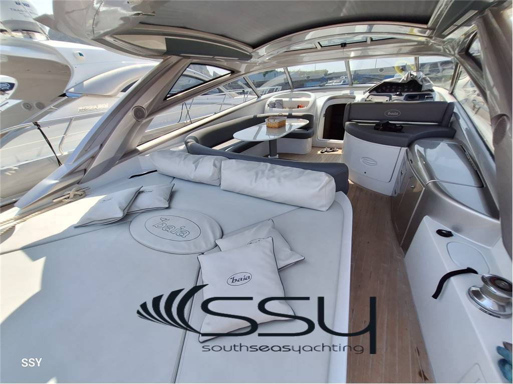 BAIA AQUA 54 HT in buone condizioni generali con murate ed hard top silver metallizzato e tuga bianca, pozzetto e pedana di poppa in teak ed interni in acero con parquet in wengè nel salone e moquette nelle cabine.