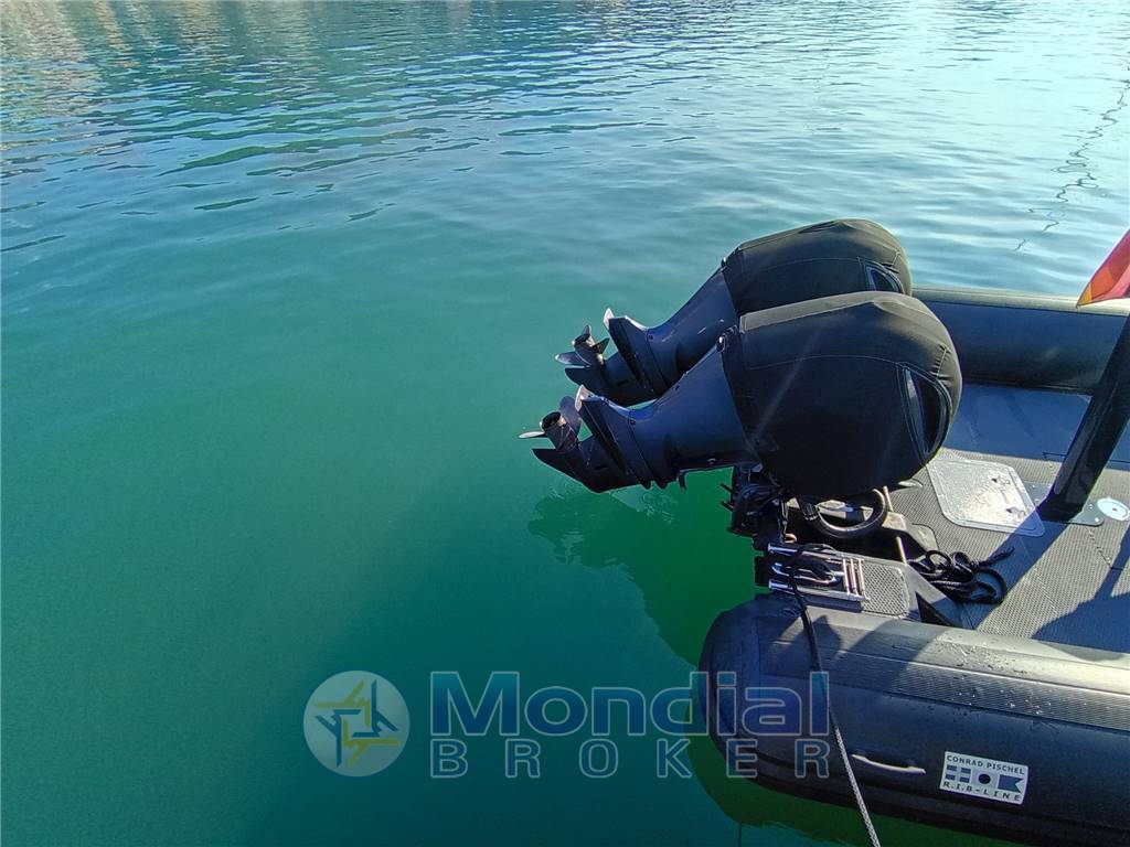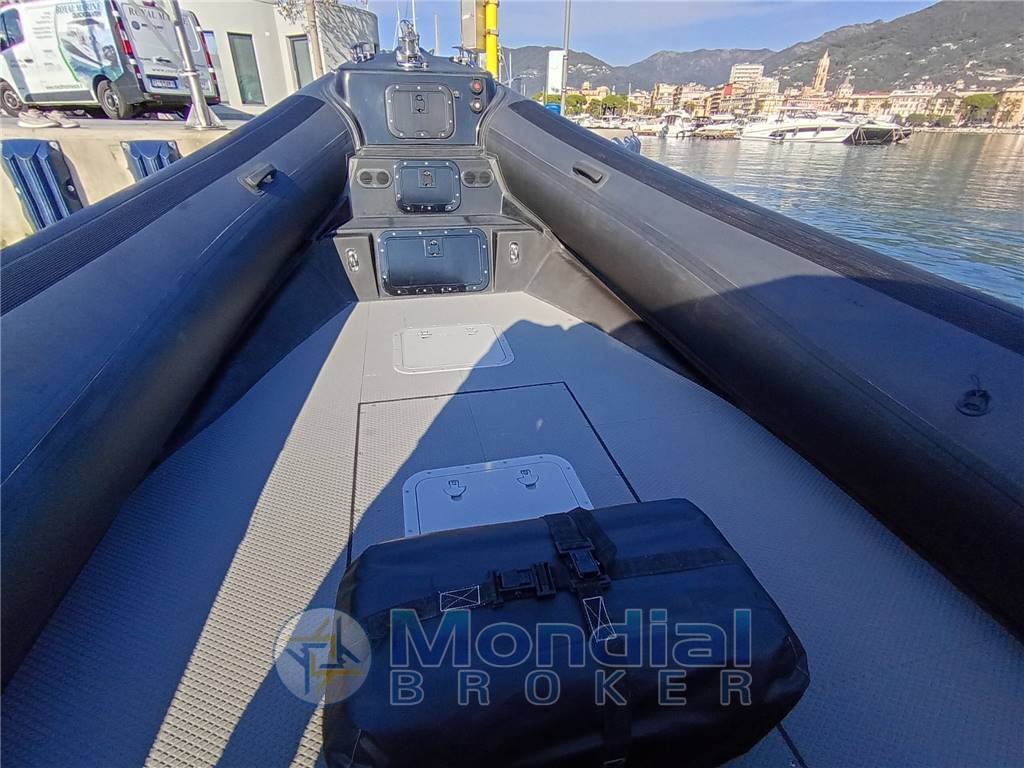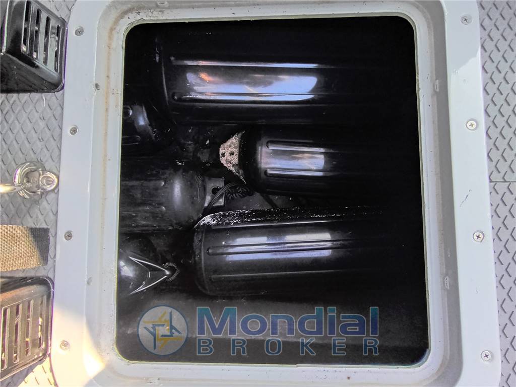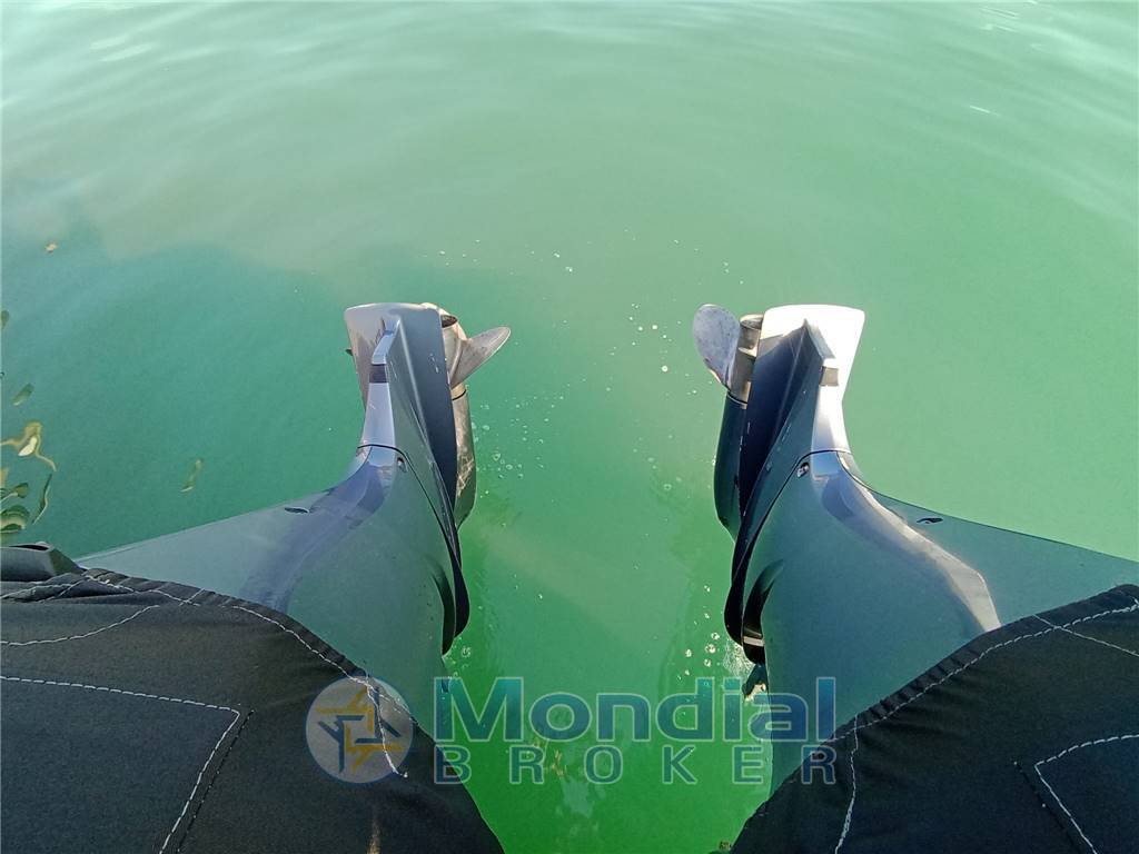 Gommone professionale di costruzione italiana, equipaggiato con doppia motorizzazione Yamaha fuoribordo da 300 hp ciascuno. L’allestimento è pensato per operazioni rapide, escursioni, impieghi tecnici o tenderaggi, con sedute individuali dotate di cinture, consolle centrale con parabrezza, e strumentazione completa. Il ponte è rivestito in materiale antiscivolo, con ampi gavoni stagni e accessi tecnici ben distribuiti. A prua è installato un verricello elettrico Quick con ancora e catena inox, mentre a poppa si trovano due motori protetti da coperture e impianto carburante ispezionabile. Ottime condizioni generali, pronta all’uso.