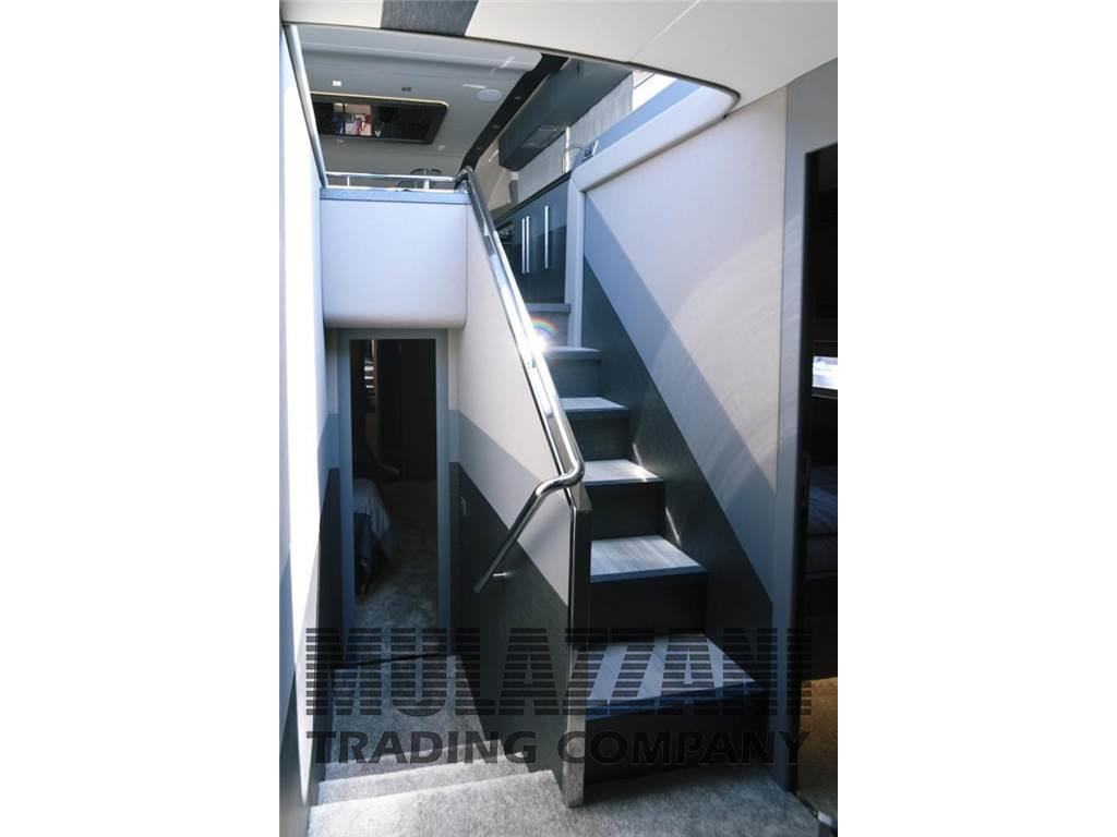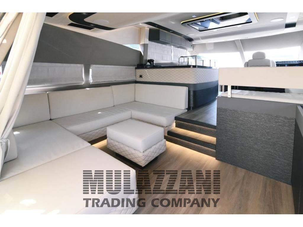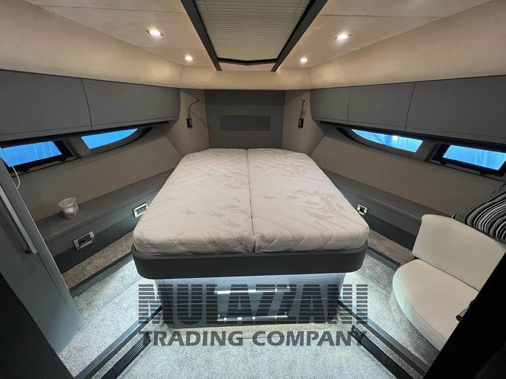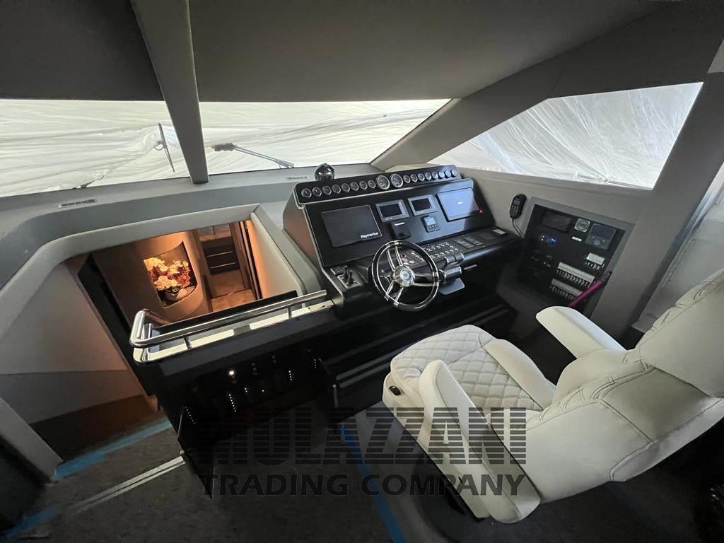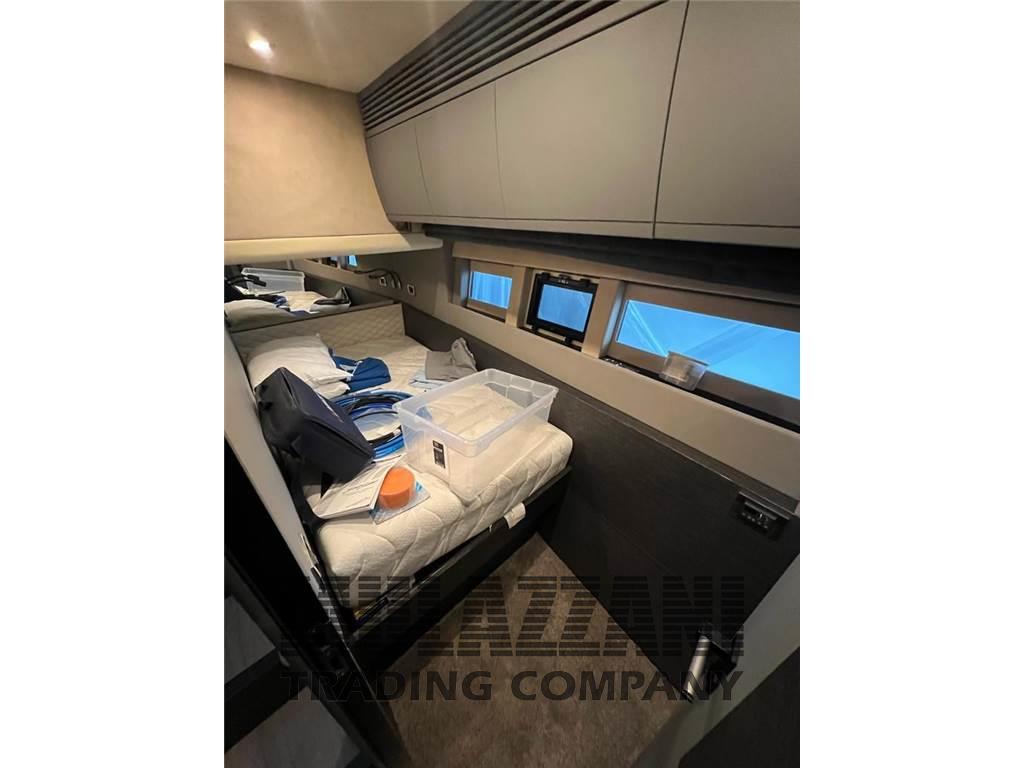 Altoparlanti, Antenna Satellitare TV, Aria condizionata, Barometro, BBQ/ Grill (sul fly), Bimini, Boiler, Cassaforte, Cassetta di pronto soccorso, Clima reversibile, Congelatore, Cucina, Cuscineria completa, Cuscineria di prua, Cuscineria fly, Digitale Terrestre, Dissalatore (200lt), Dotazioni di sicurezza oltre 50 miglia, Forno, 4 Frigorifero esterno, Frigorifero interno, Giubbetti di salvataggio, ICE Maker, Impianto acque nere, Impianto TV, Inverter, Lavastoviglie, Lavatrice, Microonde, Pavimento interno in legno, Piastra elettrica, Prese interne 12v, Prese interne 220v, Riscaldamento, Salvagente anulare con cima munita di boetta luminosa, Serbatoio Acque Nere, Stereo (impianto fusion), Telecamera (con possibilita' controllo in remoto sala macchine e fly), Teli copri finestra, Telo Copertura Fly, Telo coprisedile, 5 TV (in tutti gli ambienti), 5 WC marino elettrico, Zattera di salvataggio (12 px revisione 2023), Interceptor Volvo