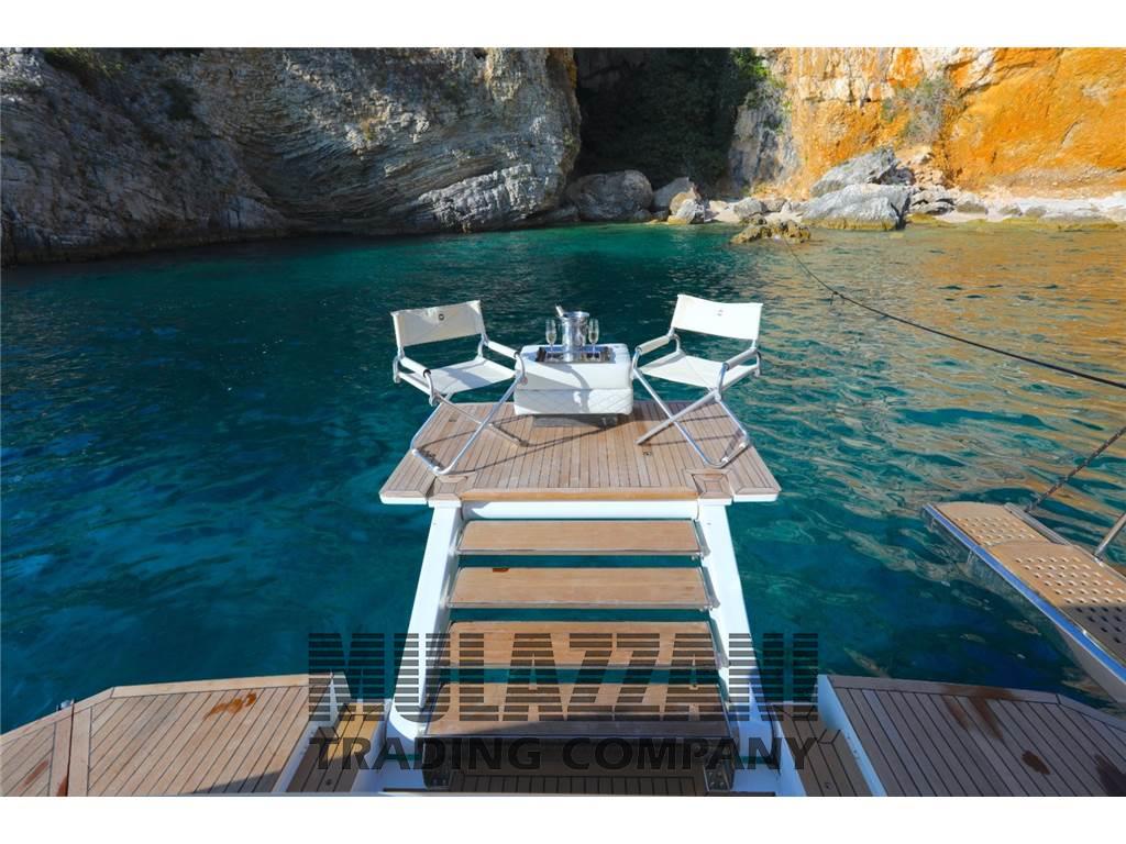 Allarme motore, Allarme sentina, Ancora (catena 100mt), Autoclave, Autogonfiabile, 10 Batterie (8 servizi + 2 motori 2023 180 ah), Bussola, Camminamenti laterali in teak, Caricabatterie (Quick e Vicotry automatico), Computer di bordo, Contametri catena, Contamiglia, Display, Doccia esterna, Ecoscandaglio, Elica di poppa - stern thruster, Elica di prua - bow thruster, Faro orientabile, Flap idraulici, GPS, Impianto antincendio (in sala macchine), Indicatori Flaps, Luci subacquee, Passerella, Piattaforma (up and down inserita nella plancetta), Pilota automatico, Plotter, 2 Plotter con antenna GPS (Raymarine interno ed esterno), Pompa di sentina automatica, Pompa di sentina manuale, Porta ingresso, Pozzetto Teak, Presa 220V banchina, Presa acqua banchina, Radar, Raddrizzatore, Radio VHF, Salpa Ancore Elettrico, Scala reale, Scaletta da bagno, Tavolo pozzetto, Tender (3,80 m + fuoribordo 40cv mercury), Tromba, 2 Winch tonneggio di poppa