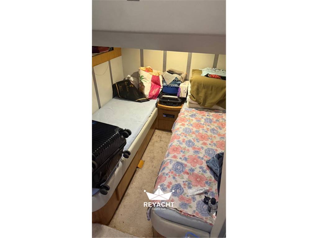 Gli interni accolgono con un’atmosfera calda e ben distribuita. Le tre cabine ospiti, ciascuna con il proprio bagno, offrono privacy e comfort, mentre la cabina marinaio con bagno dedicato garantisce un servizio impeccabile anche durante le crociere più lunghe. La climatizzazione rinforzata assicura benessere in ogni ambiente, mentre il salone con cucina integrata e TV crea uno spazio conviviale perfetto per vivere la barca anche nelle giornate più tranquille. I sei posti letto per gli ospiti, più quello dell’equipaggio, rendono questo Madras ideale per weekend dinamici o crociere più estese.
