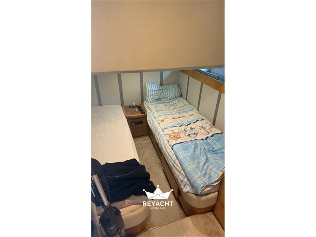 À l’intérieur, l’atmosphère est chaleureuse, accueillante et parfaitement agencée. Les trois cabines invités, chacune avec sa salle de bain privative, offrent intimité et confort, tandis que la cabine marin avec salle d’eau dédiée assure un service impeccable même lors de croisières prolongées. La climatisation renforcée garantit un bien-être optimal dans tous les espaces, et le salon, avec cuisine intégrée et télévision, crée un lieu convivial idéal pour profiter du bateau lors des moments plus calmes. Les six couchages invités, auxquels s’ajoute celui de l’équipage, font de ce Madras un yacht parfait pour des week ends dynamiques ou des croisières plus longues.
