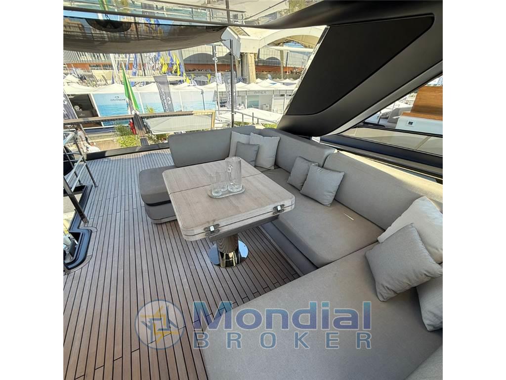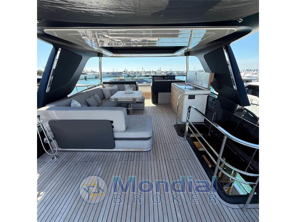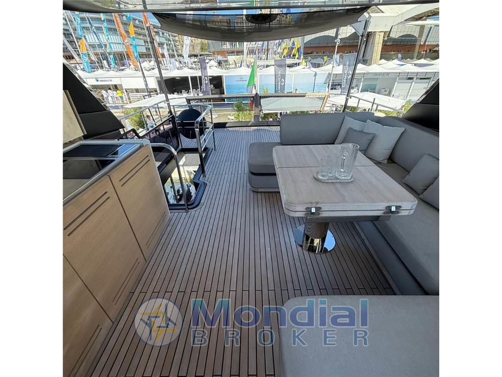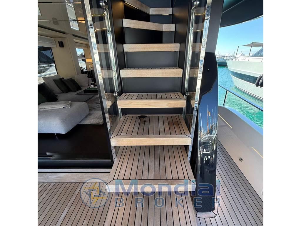 AIS (classe B), Ancora (Ancora kg 60 Ultramarine e catena 100m in acciaio inox), Angolo barra, Autoclave, Batterie, Bussola, Camminamenti laterali in teak, Caricabatterie, Cavo corrente di banchina (Avvolgitore elettrico cavo linea banchina 20 m (n.2) con telecomando), Colorazione speciale (linea di bellezza colore nero (L5)), Computer di bordo, Contametri catena, Doccia esterna, Doppia timoneria, DSC vhf, Ecoscandaglio, Elica di prua - bow thruster, Faro orientabile, Flap elettrici, Garage per tender, GPS, Joystick, Log, Luci di cortesia, Luci di navigazione, Passerella, Piattaforma, Pilota automatico, Plotter (Schermo Plotter: secondo schermo da 22" su Flybridge), Plotter con antenna GPS (Schermo Plotter: secondo schermo da 22" su ponte principale), Pompa di sentina automatica, Pompa di sentina elettrica, Ponte in teak, Porta ingresso, Porta laterale, Pozzetto Teak, Presa 220V banchina, Salpa Ancore Elettrico, Scaletta da bagno, Stabilizzatori (Pinne stabilizzatrici Humphree), Yacht controller (Ancora digitale Volvo Penta DPS)