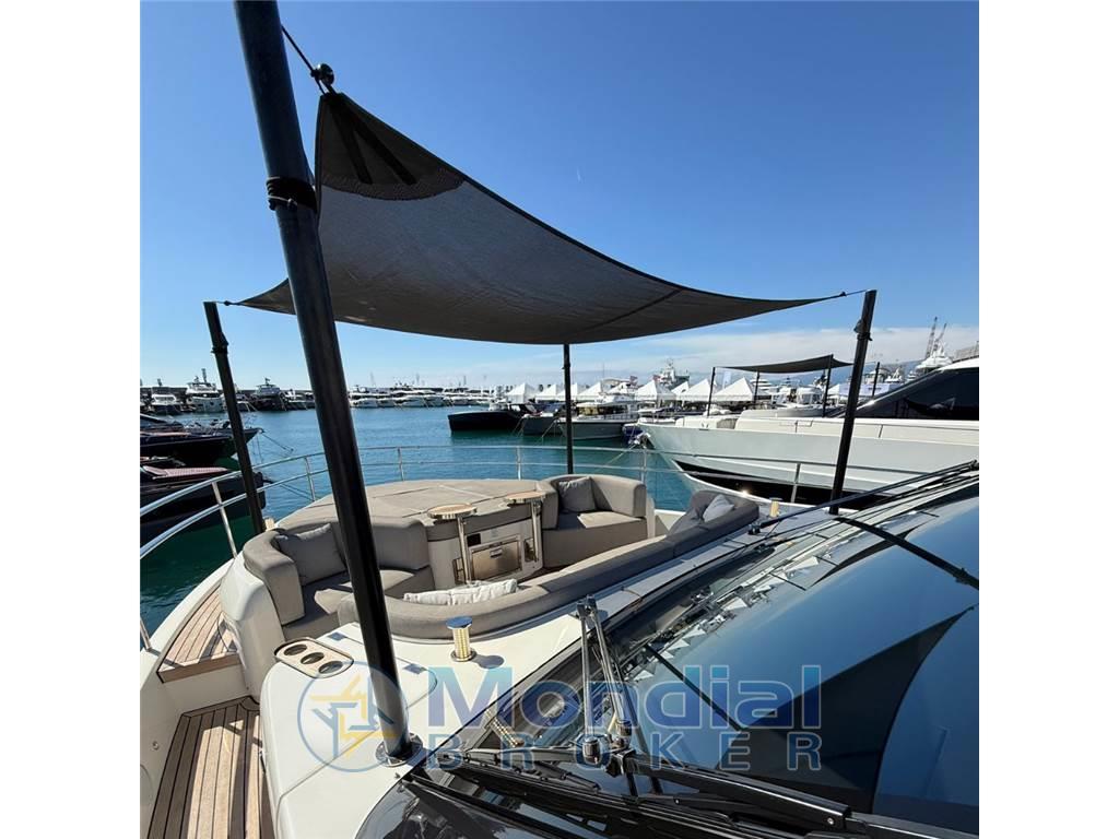 Bimini a prua con pali al carbonio e tenda parasole Flybridge a poppa con pali in carbonio
