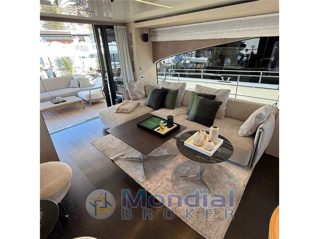 Bimini (top prua con pali in carbonio e fly), Copripozzetto, Cucina (Set di stoviglie - posaterie - bicchieri per 8 persone), Cuscineria completa, Cuscineria di poppa (Copertura per divano pozzetto a poppa), Cuscineria di prua, Cuscineria fly, Cuscineria Pozzetto, Frigorifero esterno, Frigorifero interno, Ghiacciaia (Prua), Lavasciuga (Miele), Telecamera, Teli chiusura T-Top, Telo Copertura Fly, Telo copriconsolle, Telo coprisedile, Tendalino, Termovisore, 3 TV (TV salone 55" con dispositivo elettrico a scomparsa ,Tv LED 55" cabina armatore,), 4 WC chimico